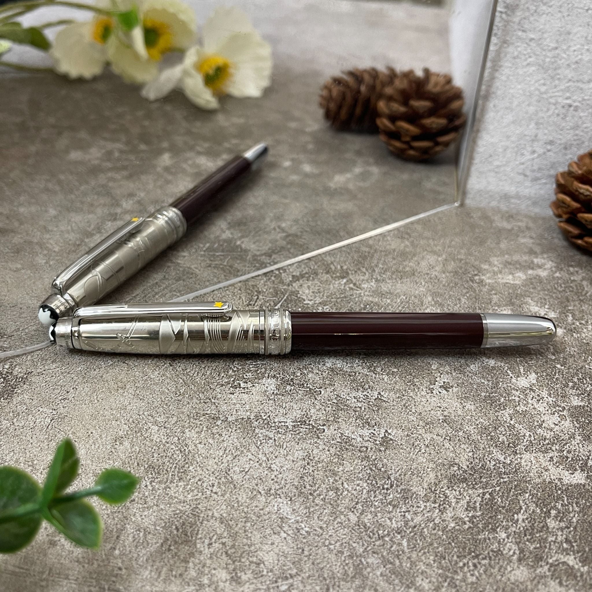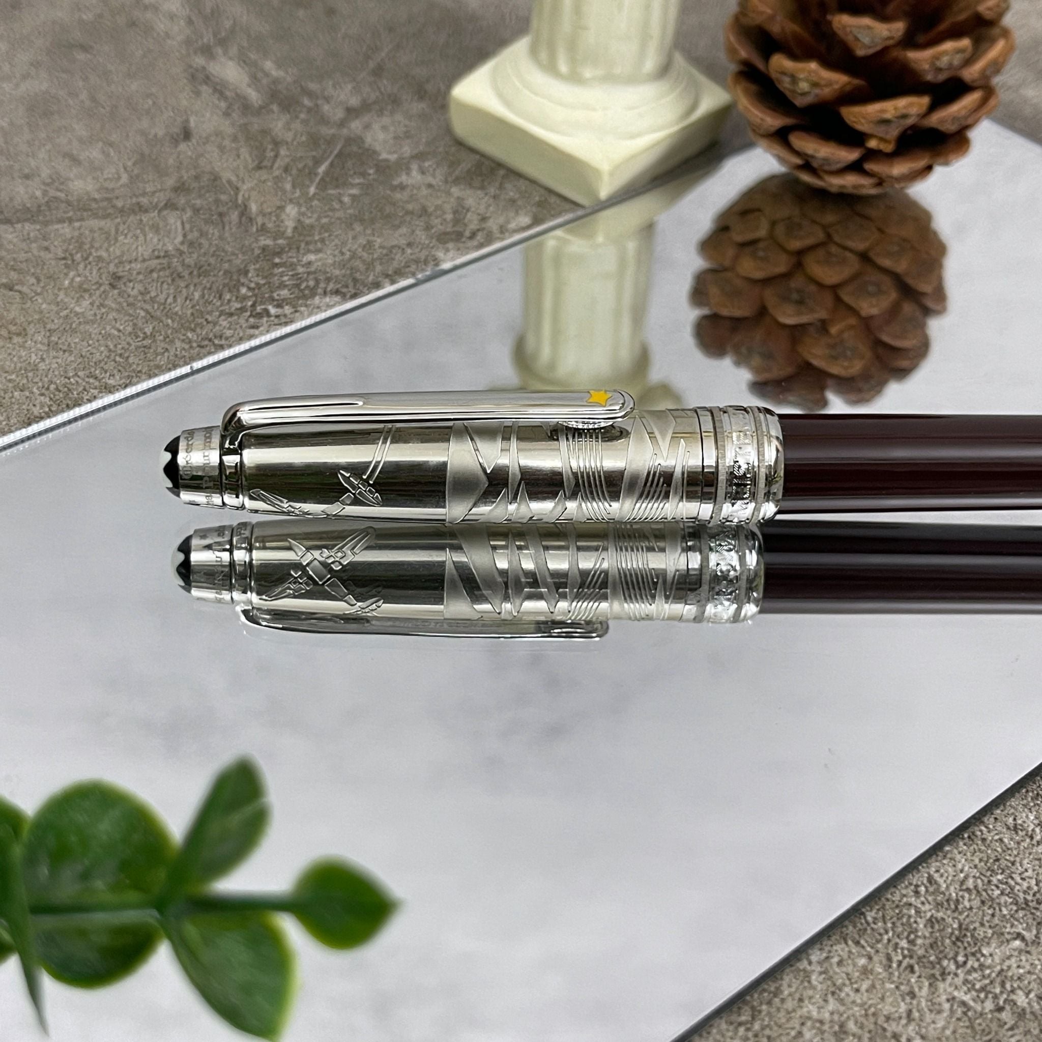 Tô điểm trên chiếc cài bút Montblanc Doué Classique là ngôi sao vàng 5 canh tinh xảo và sắc nét. Các chi tiết như cài bút, khoen, nắp mũ được mạ bạch kim tương phản với màu nâu đậm sang trọng và cuốn hút. Bút Montblanc Le Petit Prince Doué Classique rất thích hợp với những khách hàng mệnh hoả và thổ. Khác với chiếc bút Meisterstuck Le Petit Prince màu xanh, phần nắp bằng nhựa resin nâu trong bóng được trạm khắc tỉ mỉ các chi tiết trong tác phẩm Hoàng tử bé.
