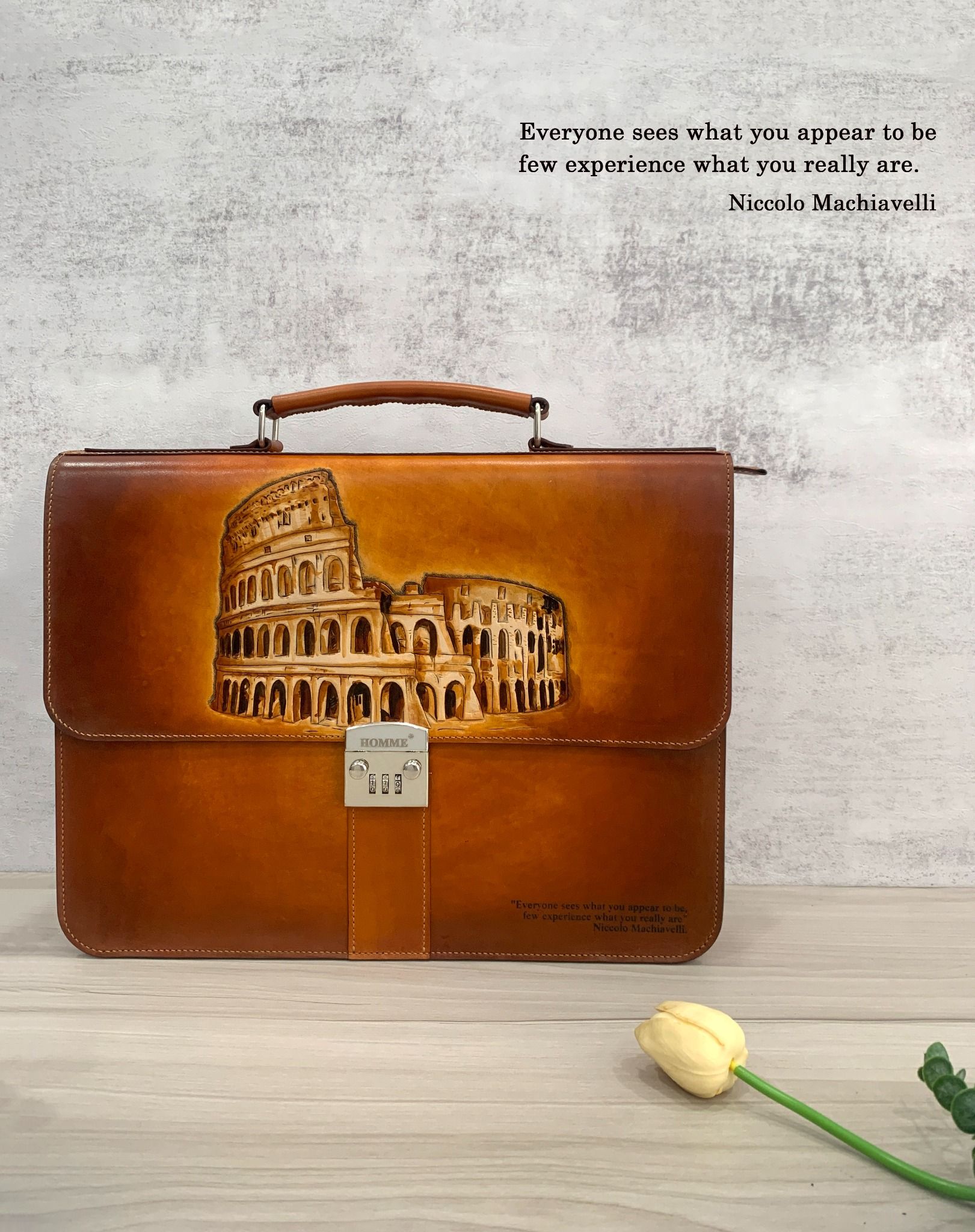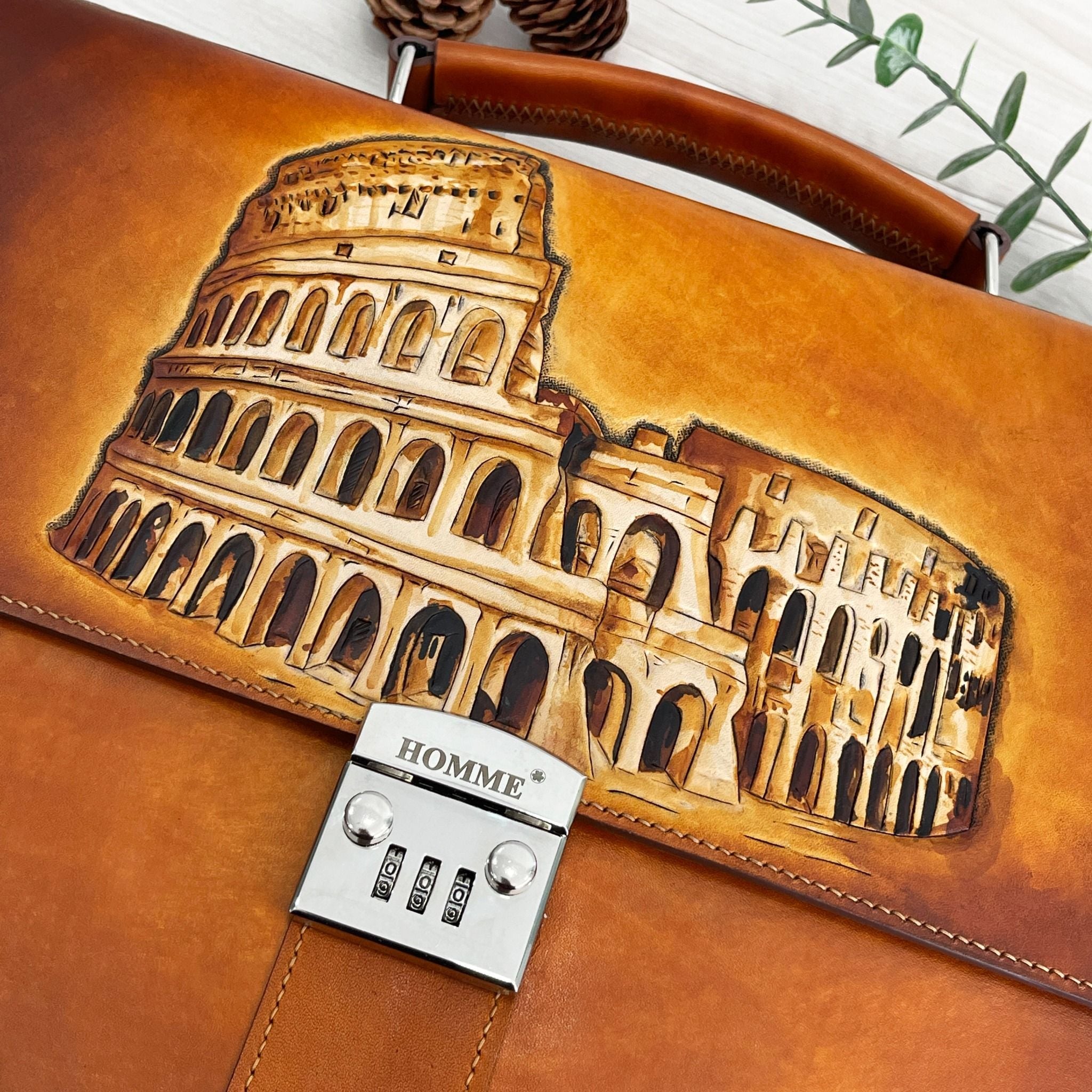 Cặp da điêu khắc Homme Handcrafted-carved Briefcase - version Colosseum, Rome