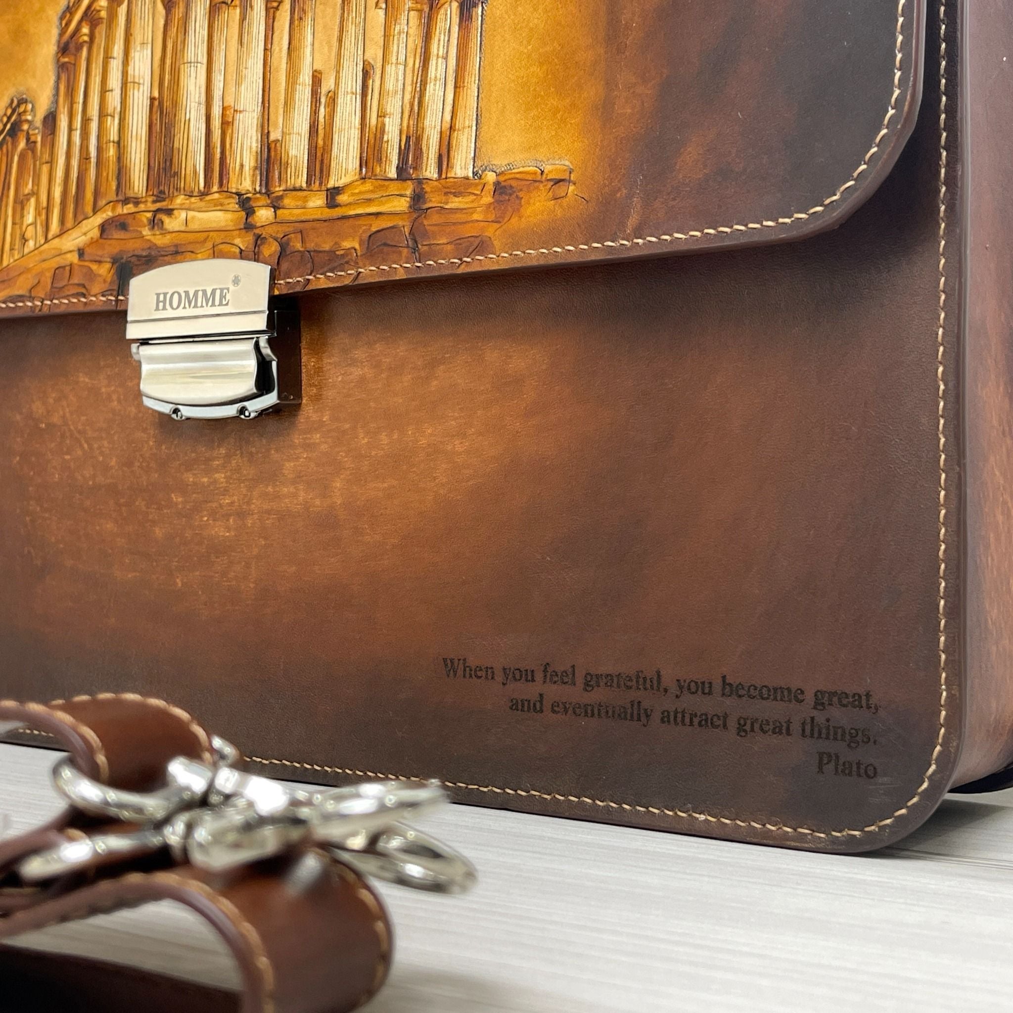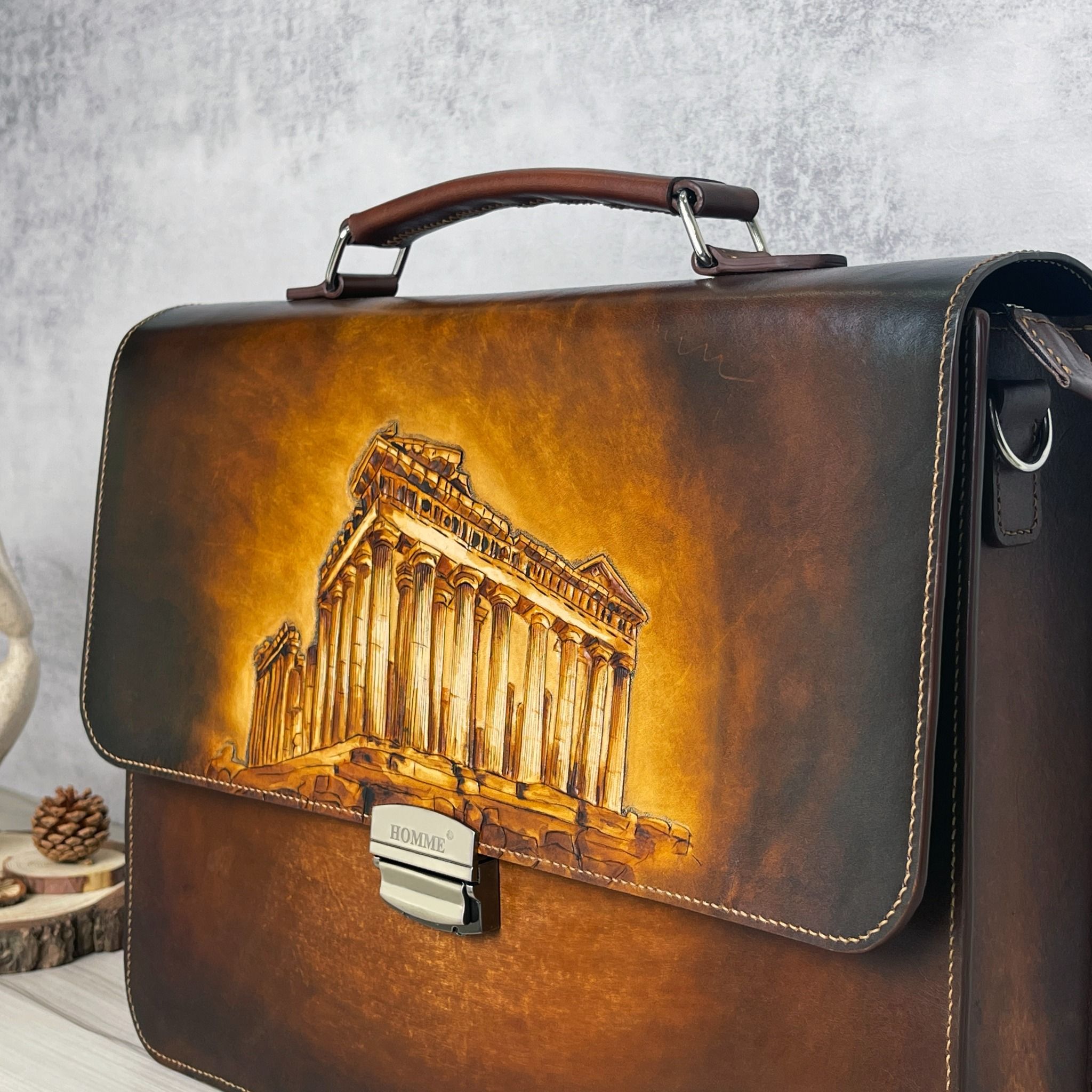 Cặp da điêu khắc Homme Handcrafted-carved Briefcase - version Parthenon, Greek