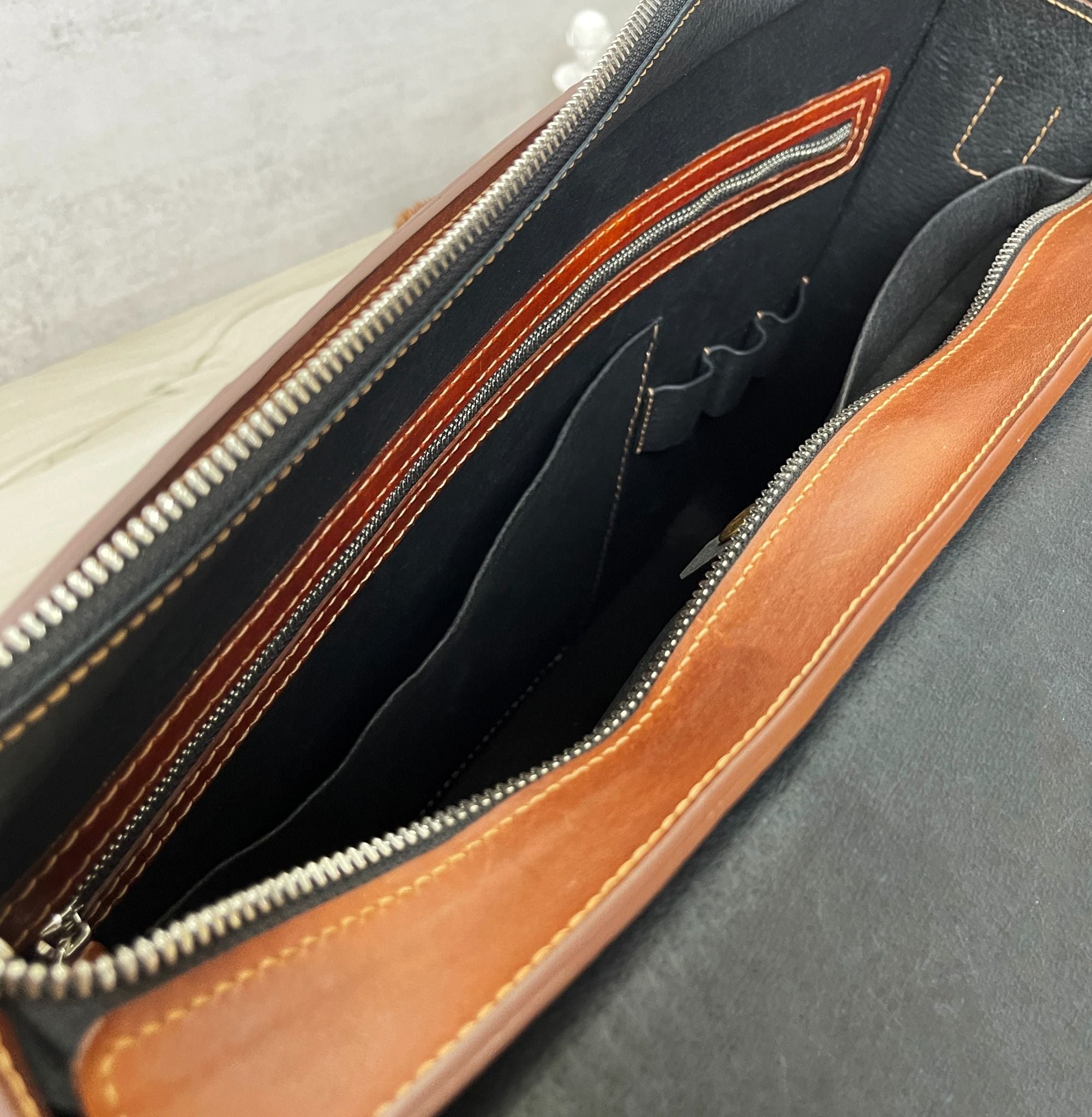 Nghệ thuật chạm khắc thủ công bằng tay được áp dụng trên da, tạo nên một mẫu cặp vừa mang tính tiện dụng lại còn đầy tính nghệ thuật.