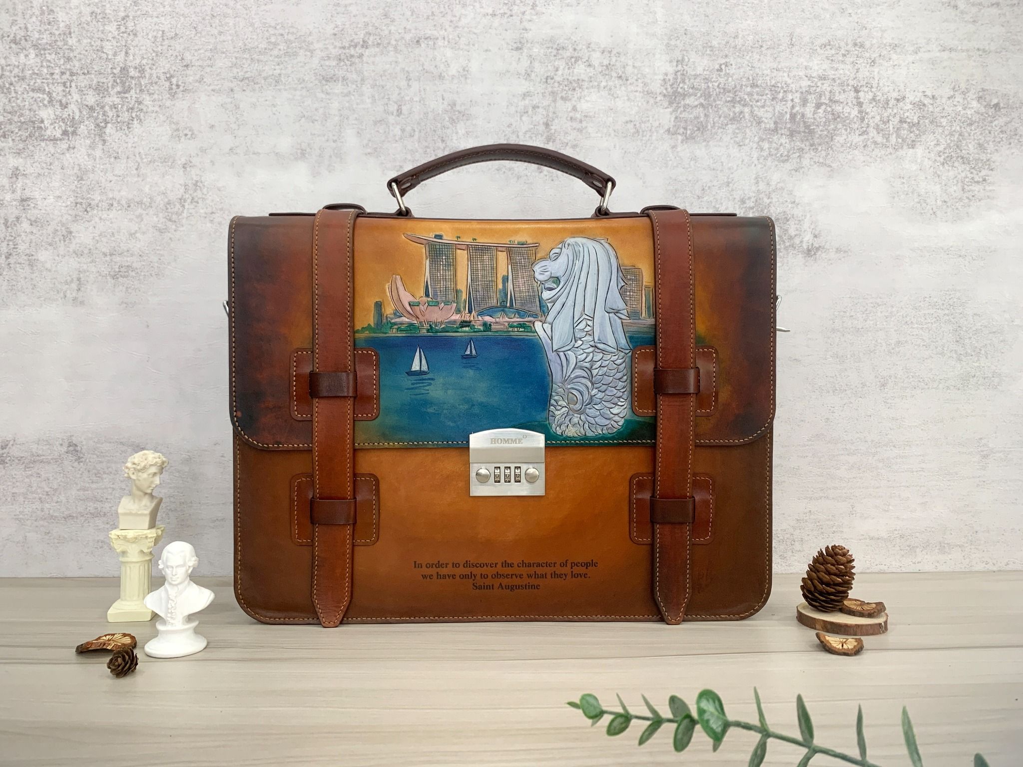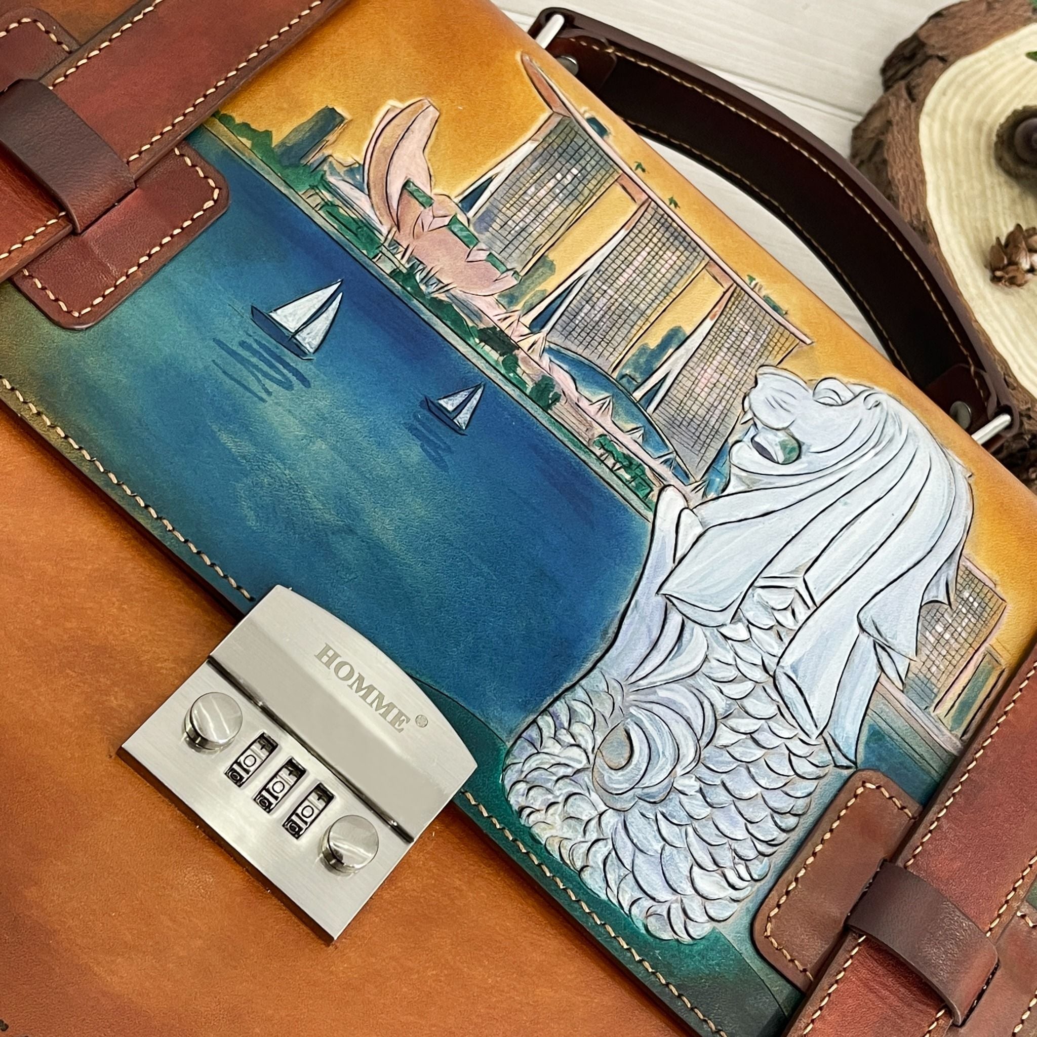 Cặp da điêu khắc Homme Handcrafted-carved Briefcase - version Singapore