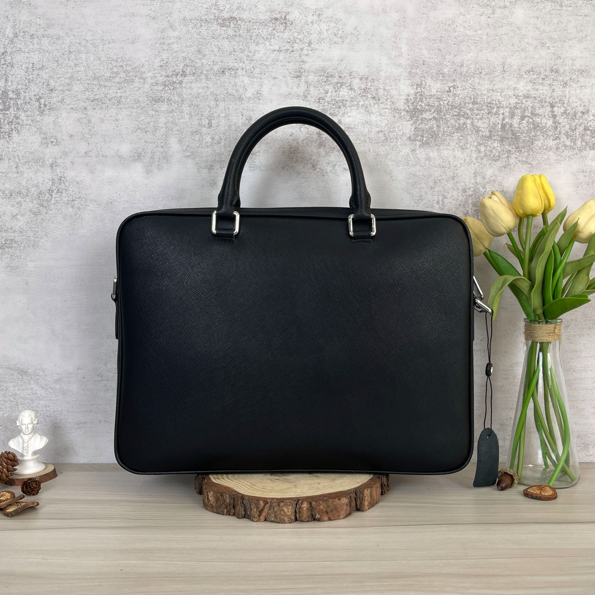 Nằm trong BST MB Sartorial mới nhất. Các sản phẩm trong BST đều được làm từ chất da Saffiano cao cấp, được thương hiệu cao cấp sử dụng như Pra.da. Da saffiano chống thấm, chống trầy, chịu nước và dễ dàng vệ sinh, bảo quản.Kiểu dáng cặp đơn giản tinh tế tạo nên sự thanh lịch khi kết hợp cùng với những bộ Âu Phục. Bên trong được lót bằng lớp vải dù với ngăn chính rộng rãi thoải mái đựng các vật dụng cá nhân.