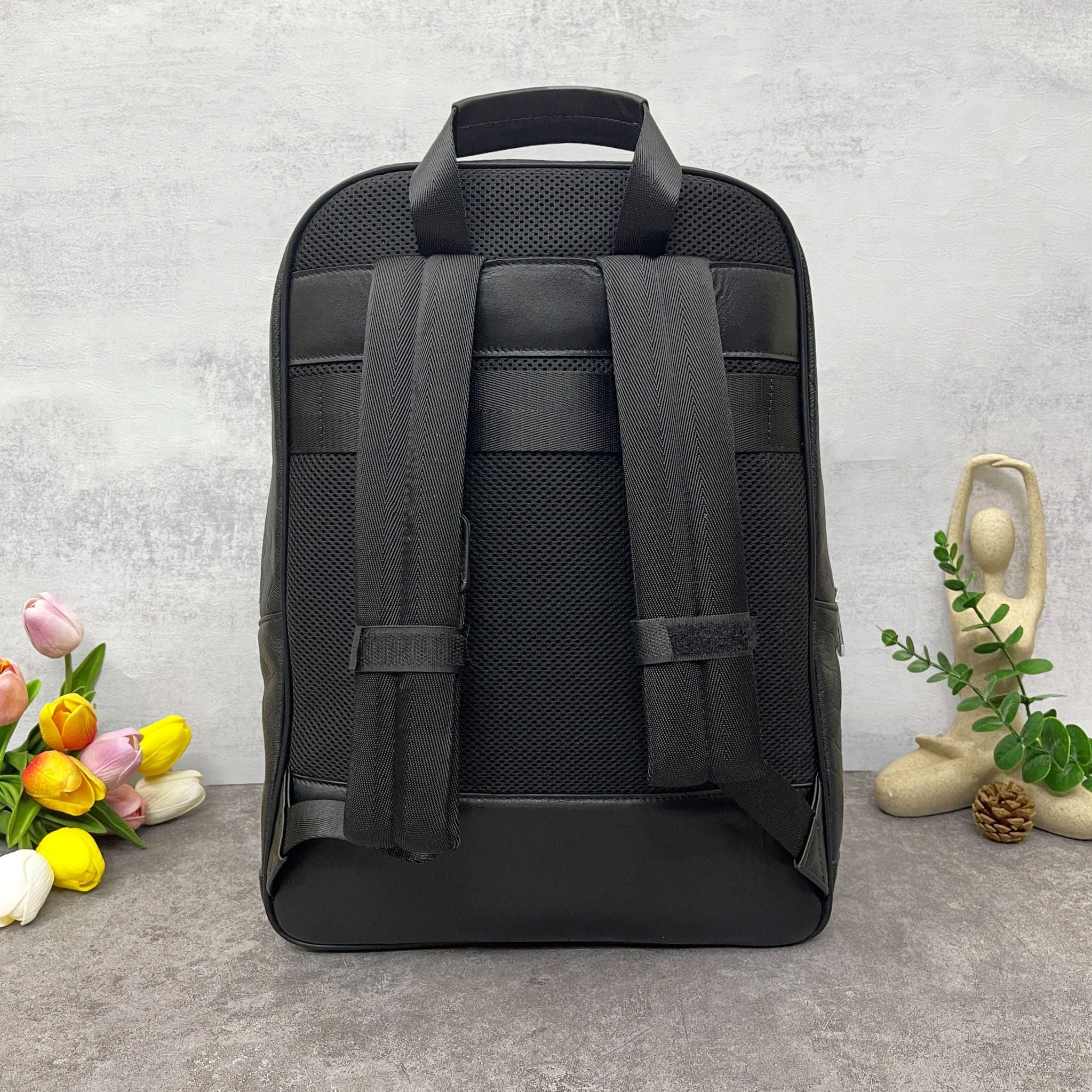 Montblanc đã không quên cảm giác thoải mái khi đeo cặp. Phía sau cặp có đệm xốp thoáng khí, giúp giảm áp lực và tạo cảm giác êm ái khi bạn mang cặp trong suốt cả ngày dài. Điều này rất quan trọng đối với những người thường xuyên di chuyển và có lịch trình công việc bận rộn.