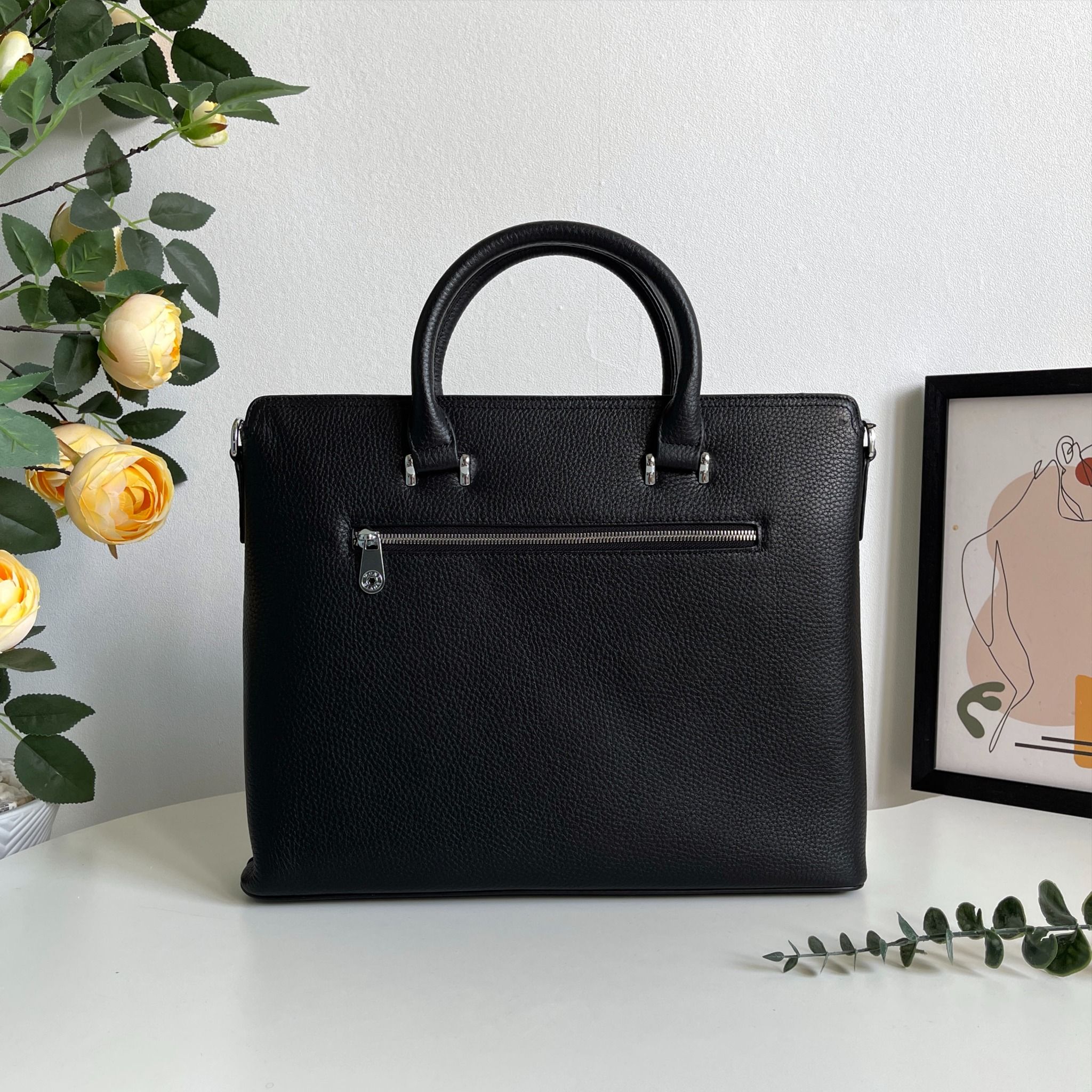 Chất liệu da bò hạt mềm cao cấp được sử dụng trong sản xuất cặp xách, không chỉ mang đến vẻ đẹp tự nhiên, mà còn tăng thêm tính bền bỉ và sự sang trọng cho sản phẩm. Được thiết kế với sự tinh tế, bên ngoài của cặp xách có một ngăn mở có nút đóng và một ngăn kéo khóa tiện dụng, giúp bạn dễ dàng truy cập và lưu trữ các vật phẩm cần thiết trong cuộc sống hàng ngày.
