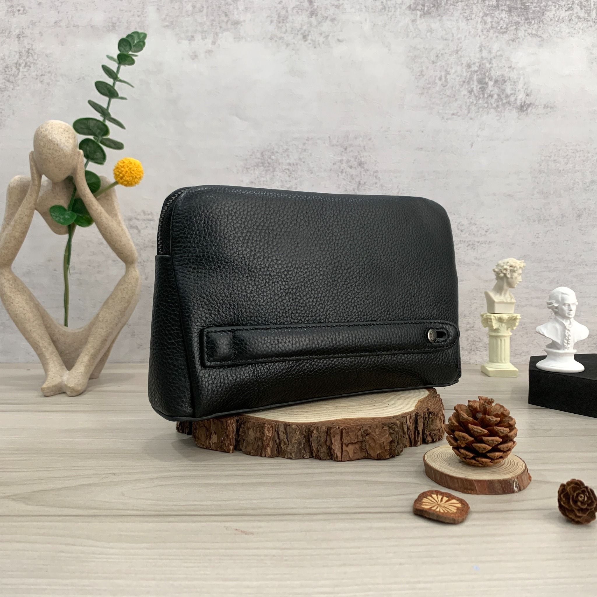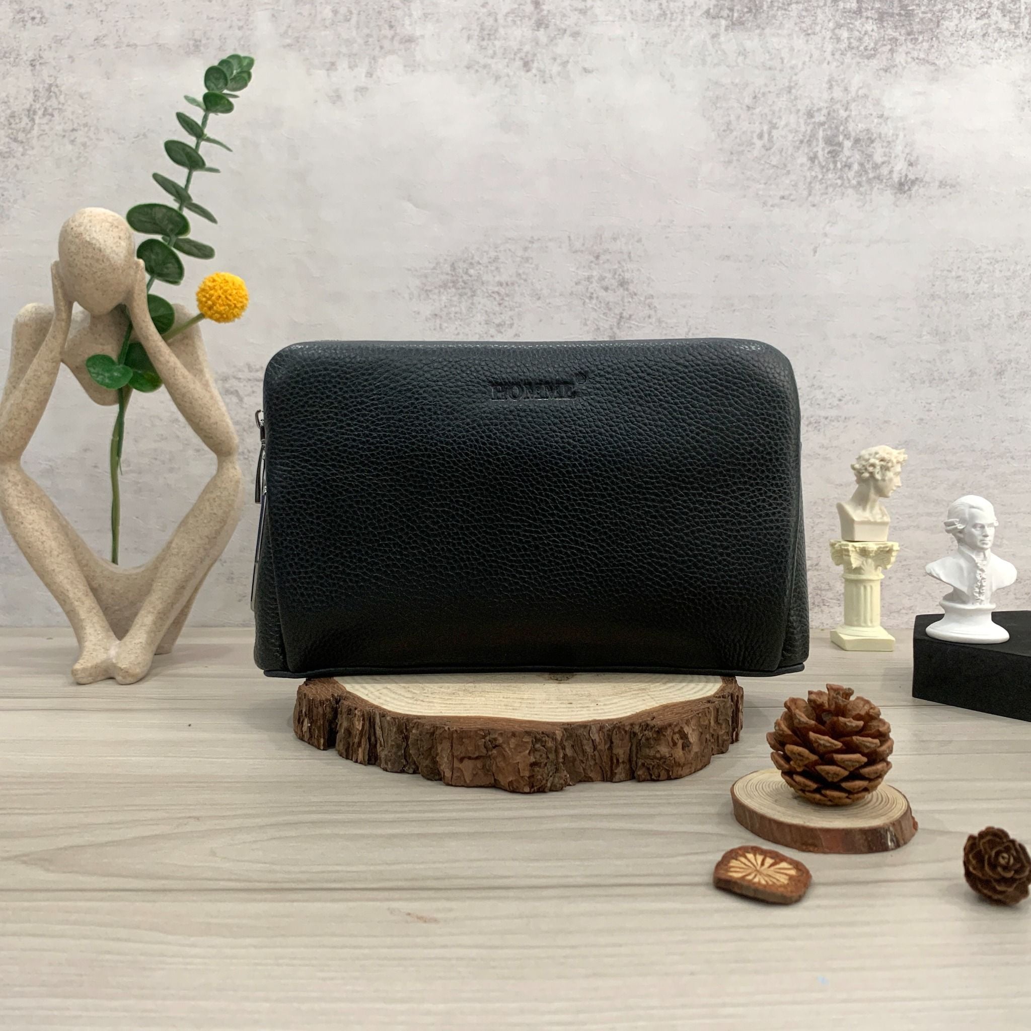 -Kiểu dáng túi nhỏ gọn vừa tay, phong cách tối giản những không kém phần thanh lịch và trang trọng cân hết mọi outfit luôn nhé mấy anh ^^