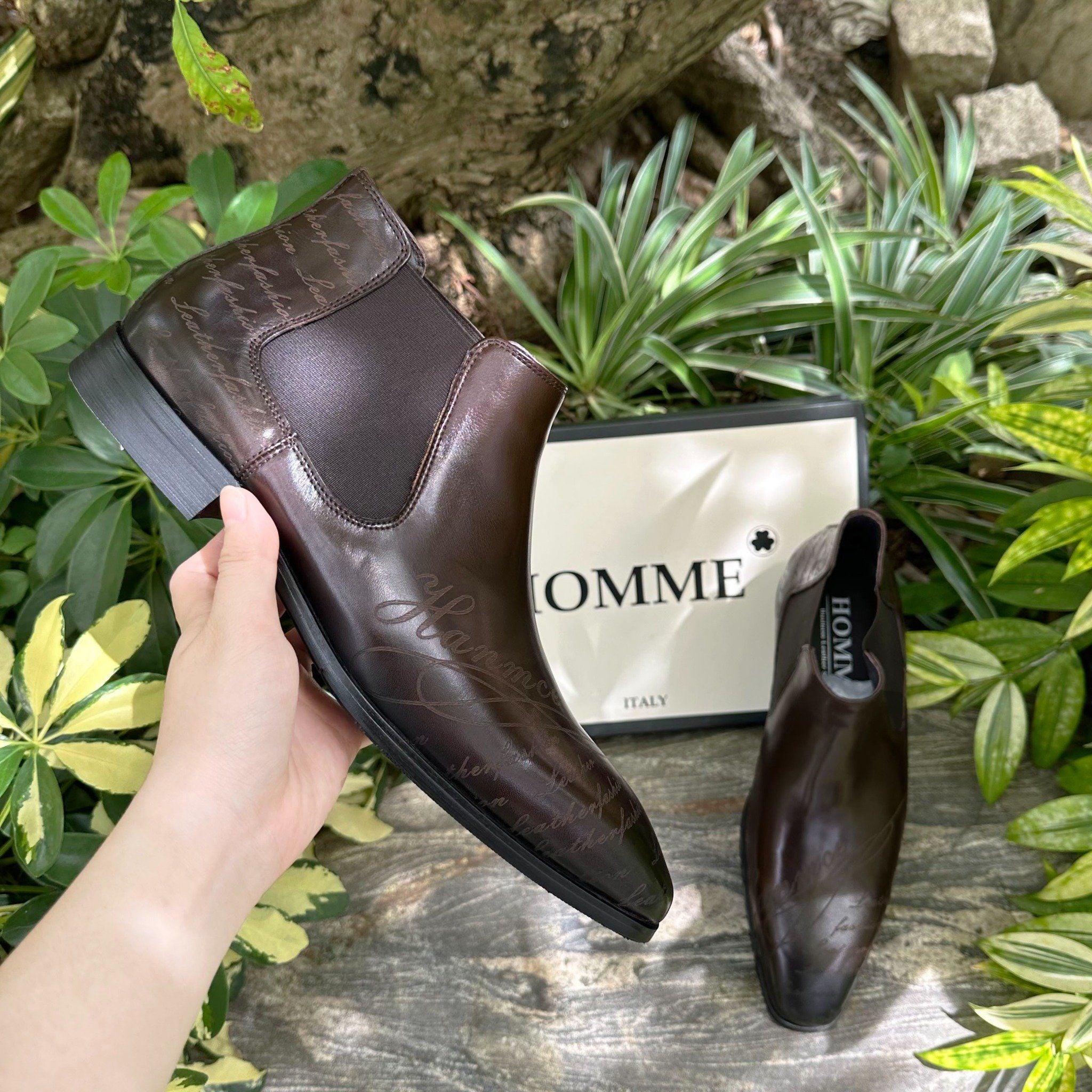 Mỗi đôi Boots được chế tác tỉ mỉ từ da bò thật 100%, đảm bảo độ bền vượt trội và vẻ ngoài sang trọng vượt thời gian. Điểm nhấn làm nên sự khác biệt chính là dòng chữ ký được điêu khắc tinh xảo bởi các nghệ nhân lành nghề tại Italy. Đây không chỉ là một chi tiết trang trí mà còn là dấu ấn của sự độc bản và giá trị nghệ thuật cao cấp, nâng tầm phong cách của bạn.