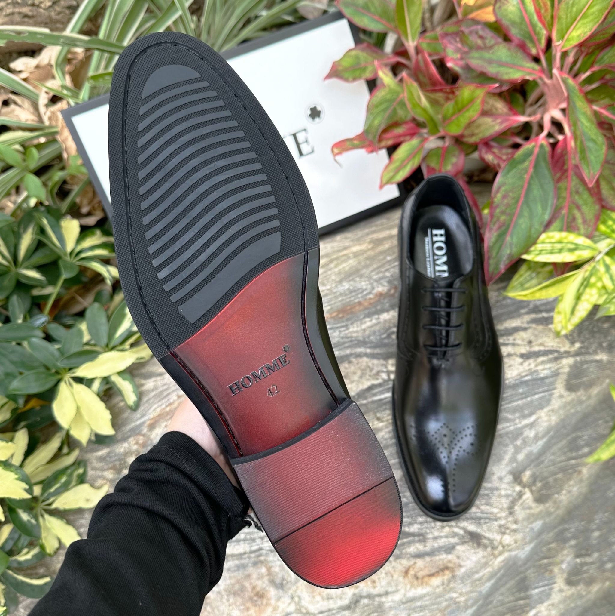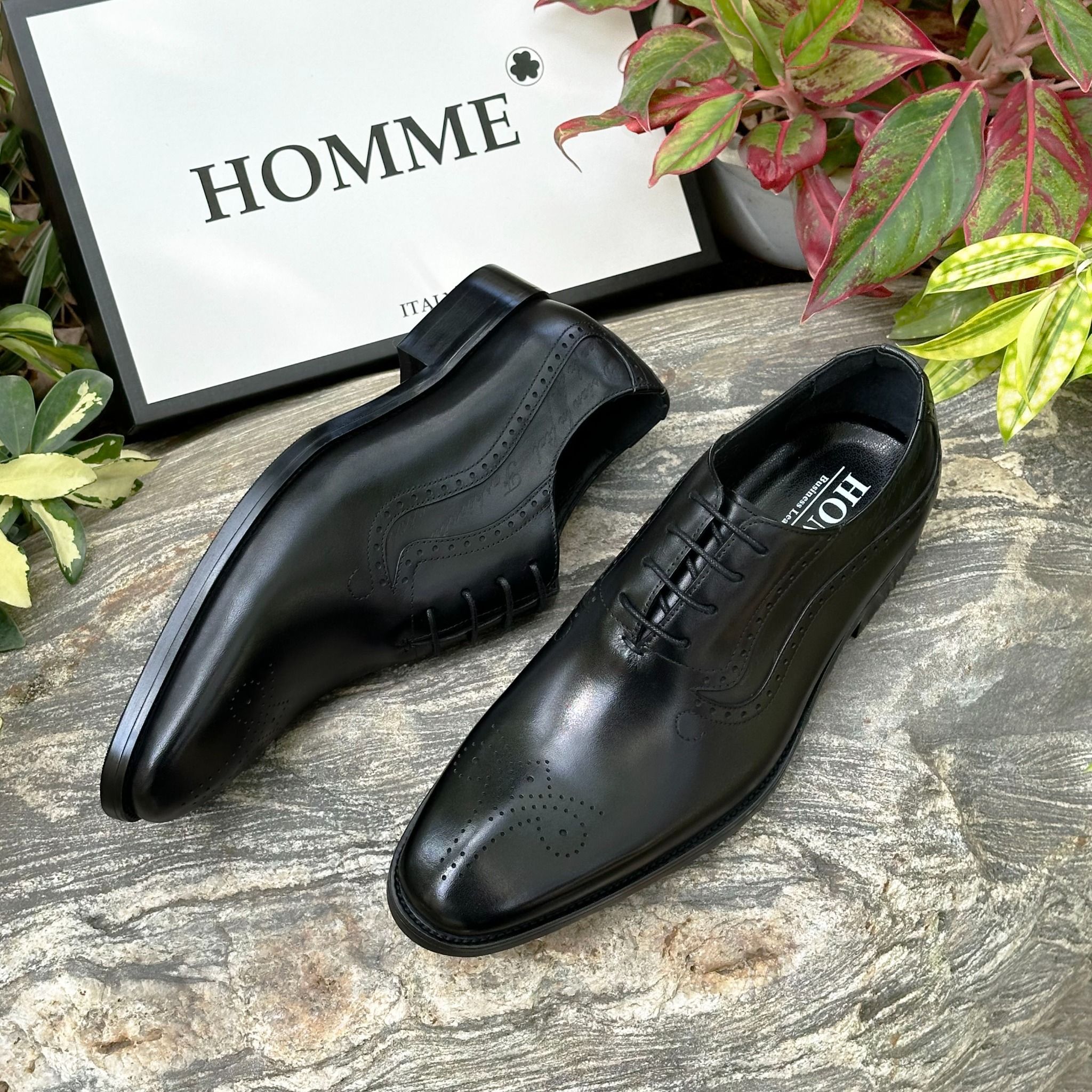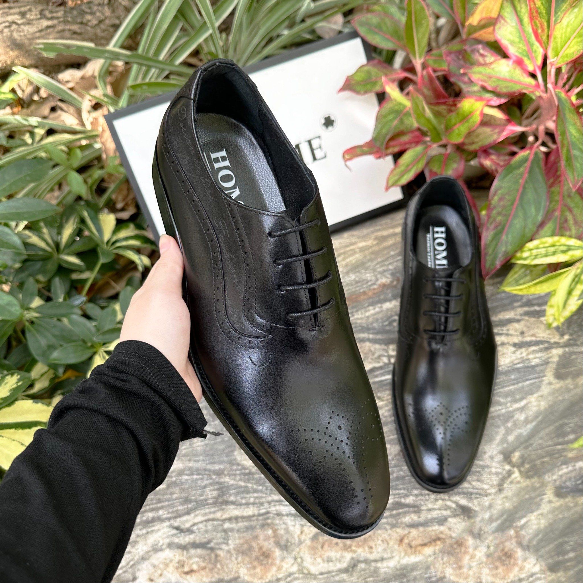 - Kiểu dáng Oxford cổ điển với chi tiết brogue tinh tế trên mũi giày là sự lựa chọn hoàn hảo cho những quý ông yêu thích vẻ đẹp lịch lãm và sang trọng.