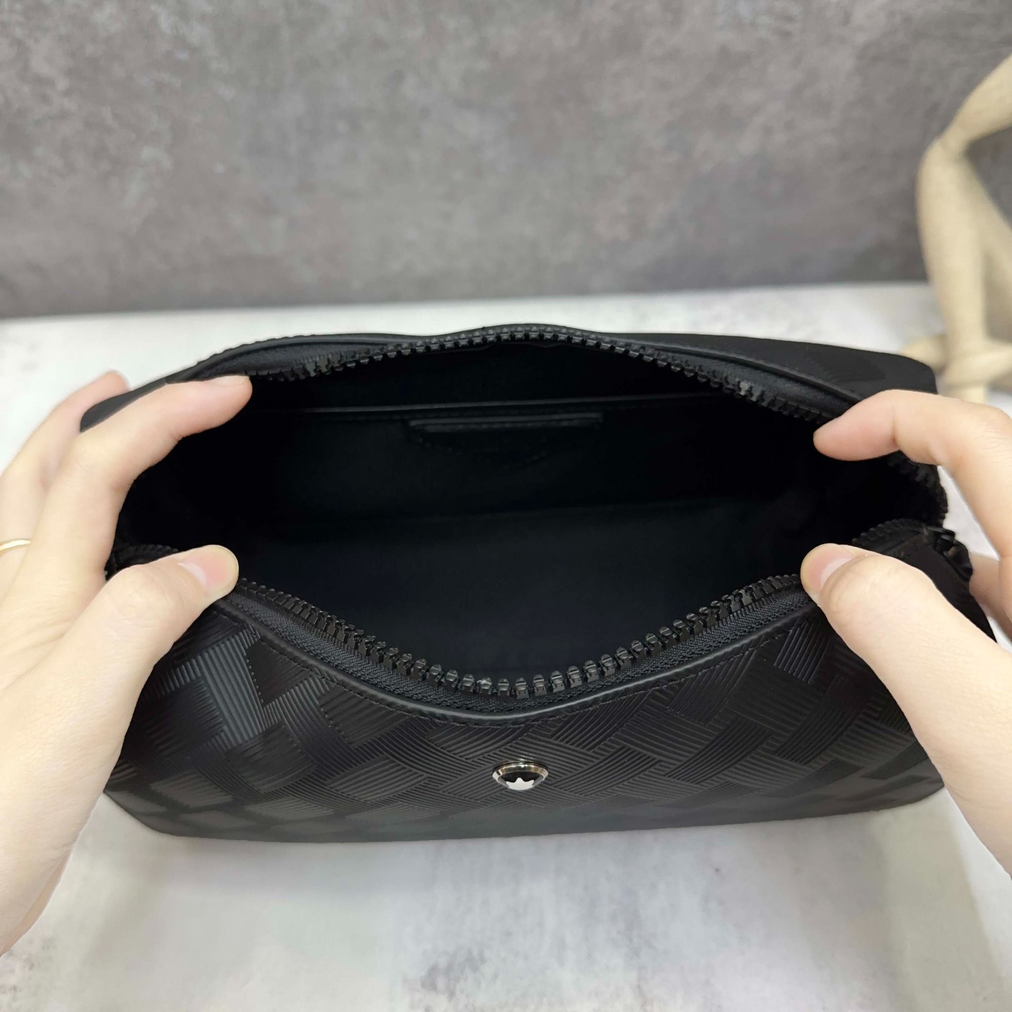 Với kích thước 24x14x13cm, Túi đựng nhỏ gọn nhưng vô cùng tiện dụng này được chế tác từ chất liệu da bò cao cấp, dập nổi với họa tiết Extreme 3.0, tạo nên độc cứng và mạnh mẽ, có thể xác định dấu ấn của Montblanc in từng đường nét.