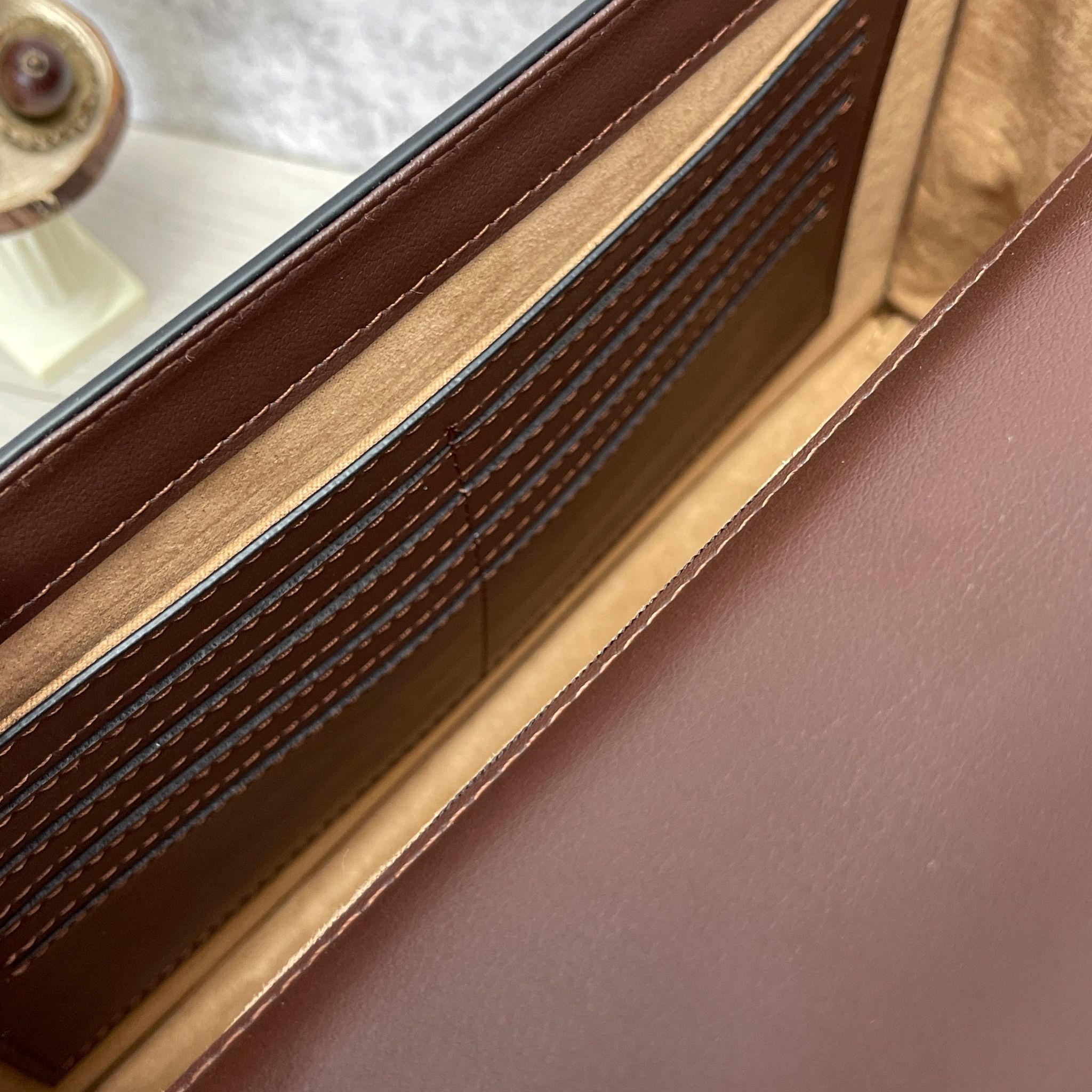 Thiết kế bên trong có ngăn lớn thoải mái cho mình đựng các vật dụng cá nhân, đựng được cả những mẫu ví cỡ vừa, có ngăn kéo nhỏ và ngăn đựng card riêng
