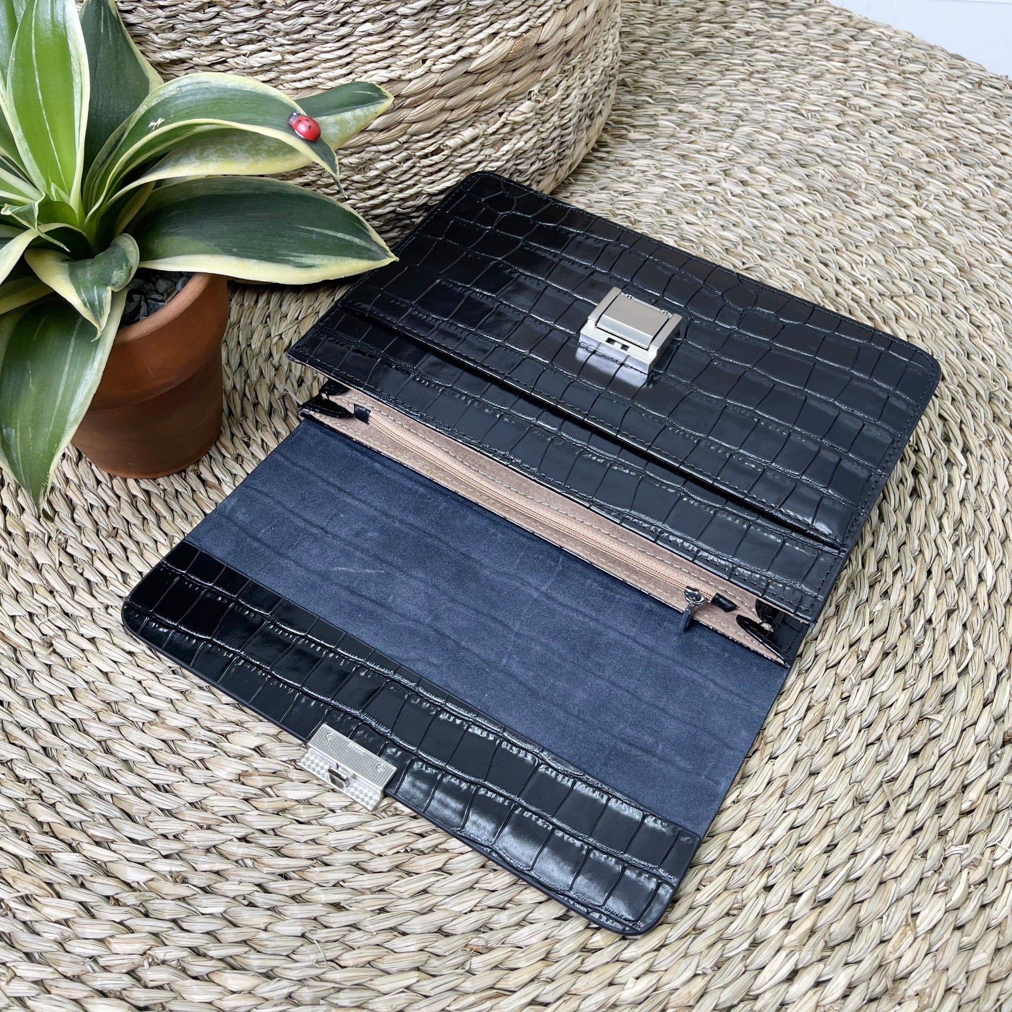 Thiết kế bên trong có thêm lớp da lót mềm mại, cấu tạo một ngăn chính rộng rãi thoải mái đựng các vật dụng cá nhân, có ngắn kéo khoá zip và ngăn để thẻ, card riêng