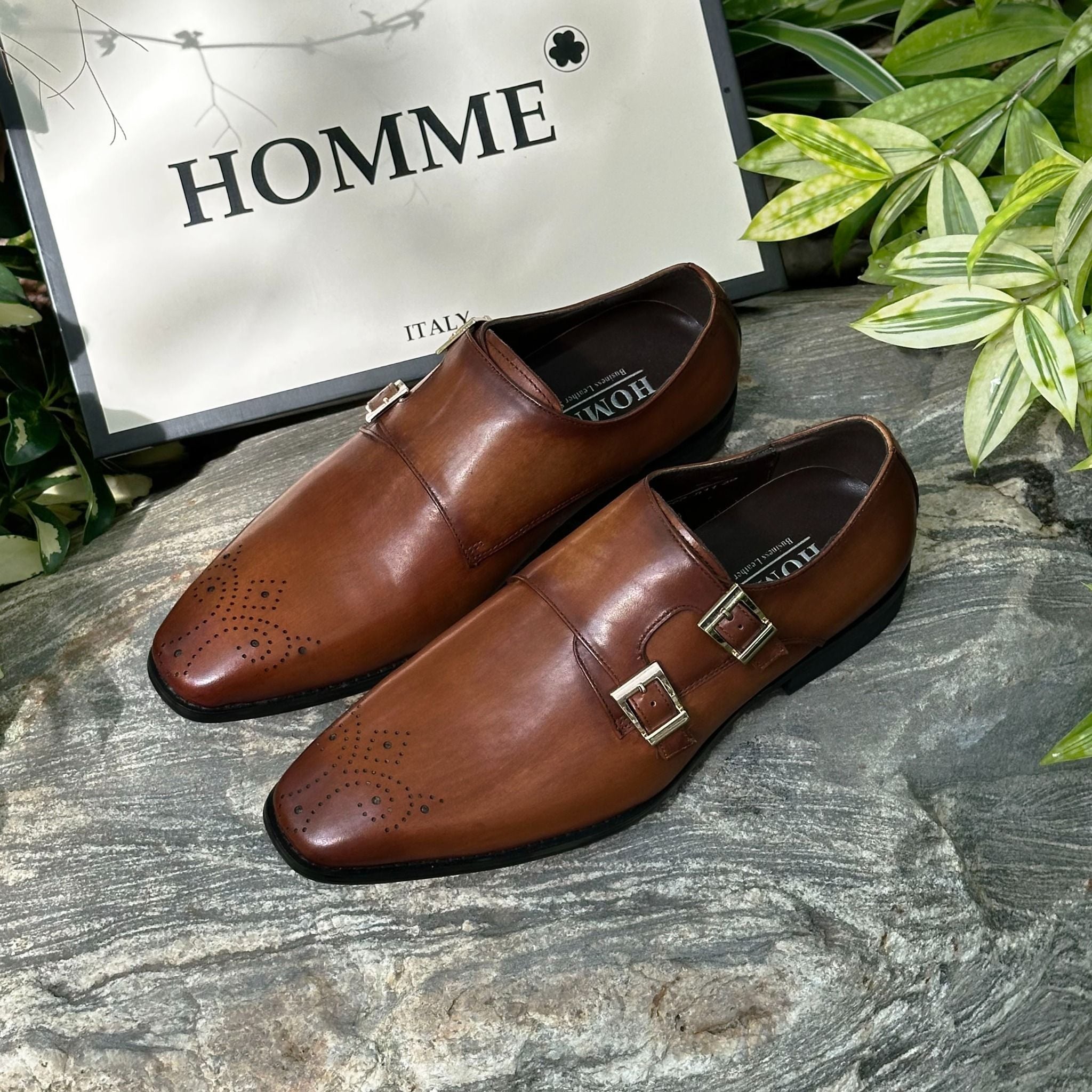 - Giày tây nam Homme Milano - Double Buckle Monk Strap Shoes là một loại giày tây nam phong cách cổ điển với thiết kế đặc trưng là hai khóa đôi (double buckle) trên phần trên của giày. Hệ thống khóa này không chỉ mang tính thẩm mỹ mà còn giúp điều chỉnh độ rộng của giày dễ dàng, tạo sự thoải mái và ôm vừa vặn cho chân. Đây là một dòng sản phẩm được ưa chuộng và phổ biến trong ngành thời trang nam, mang lại sự lịch lãm và sang trọng cho người mang.
