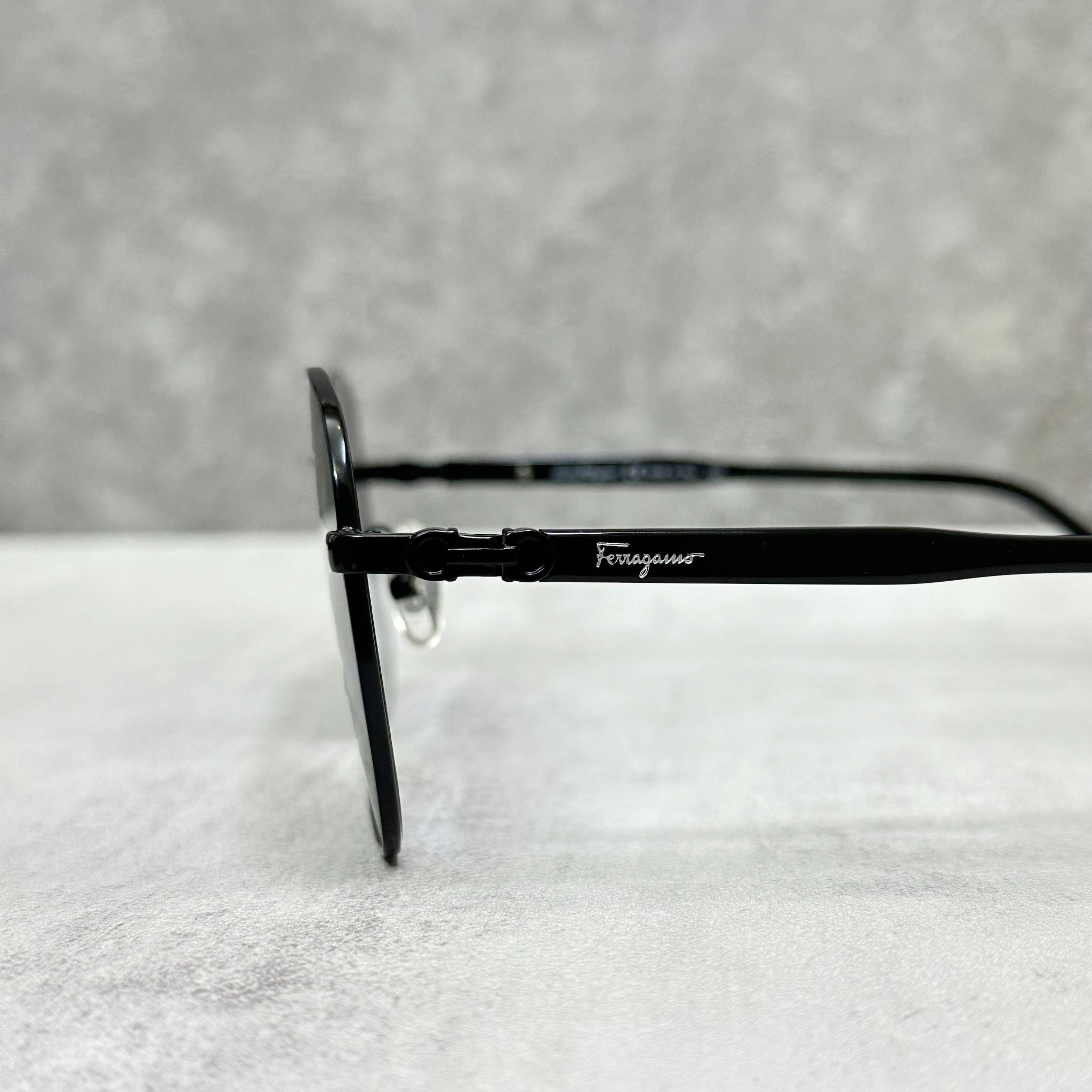 - Gọng kính kim loại màu đen sang trọng, bền bỉ, tạo sự chắc chắn và thoải mái khi đeo.