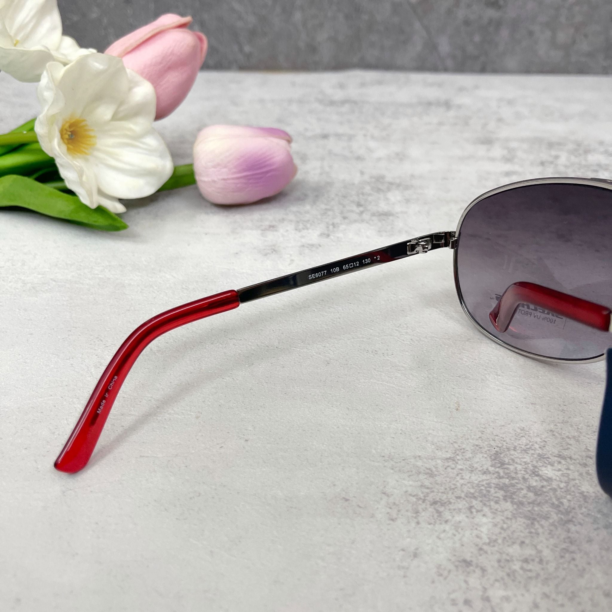 - Tròng kính màu khói loang, gọng kính bằng kim loại Niken sáng bóng