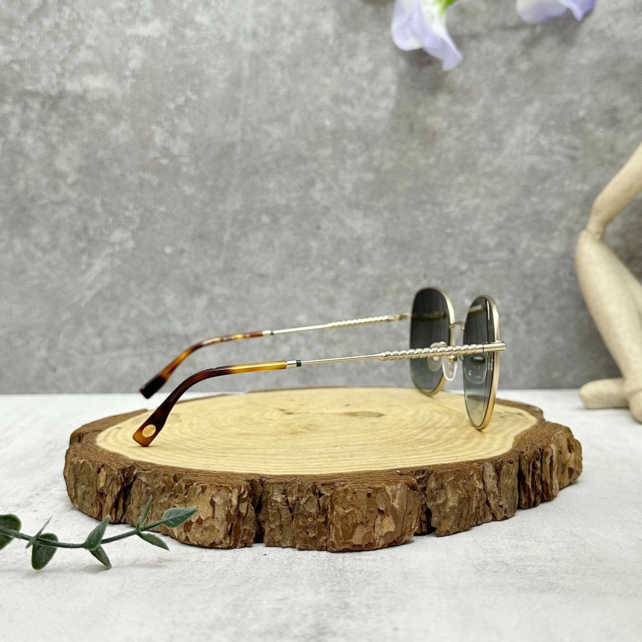 - Gọng kính kim loại màu vàng nhạt, tạo nên sự sang trọng và đẳng cấp.