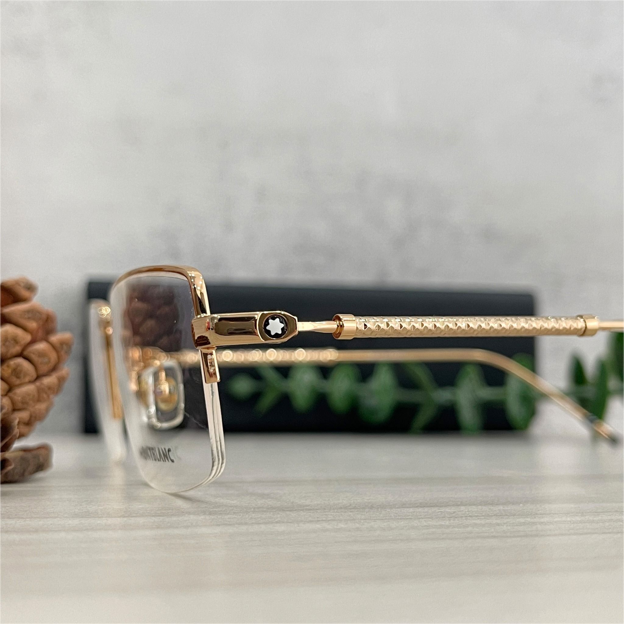 - Tròng kính nửa viền sang trọng, khi đeo vào mang lại vẻ thanh thoát cho khuôn mặt