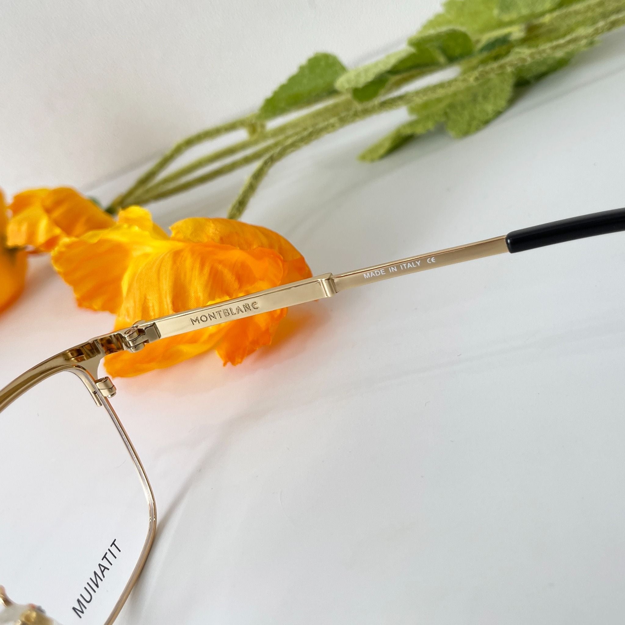 - Gọng kính metal mạ vàng, có khắc logo góc trên bên trái mắt kính và logo in trên gọng kính.