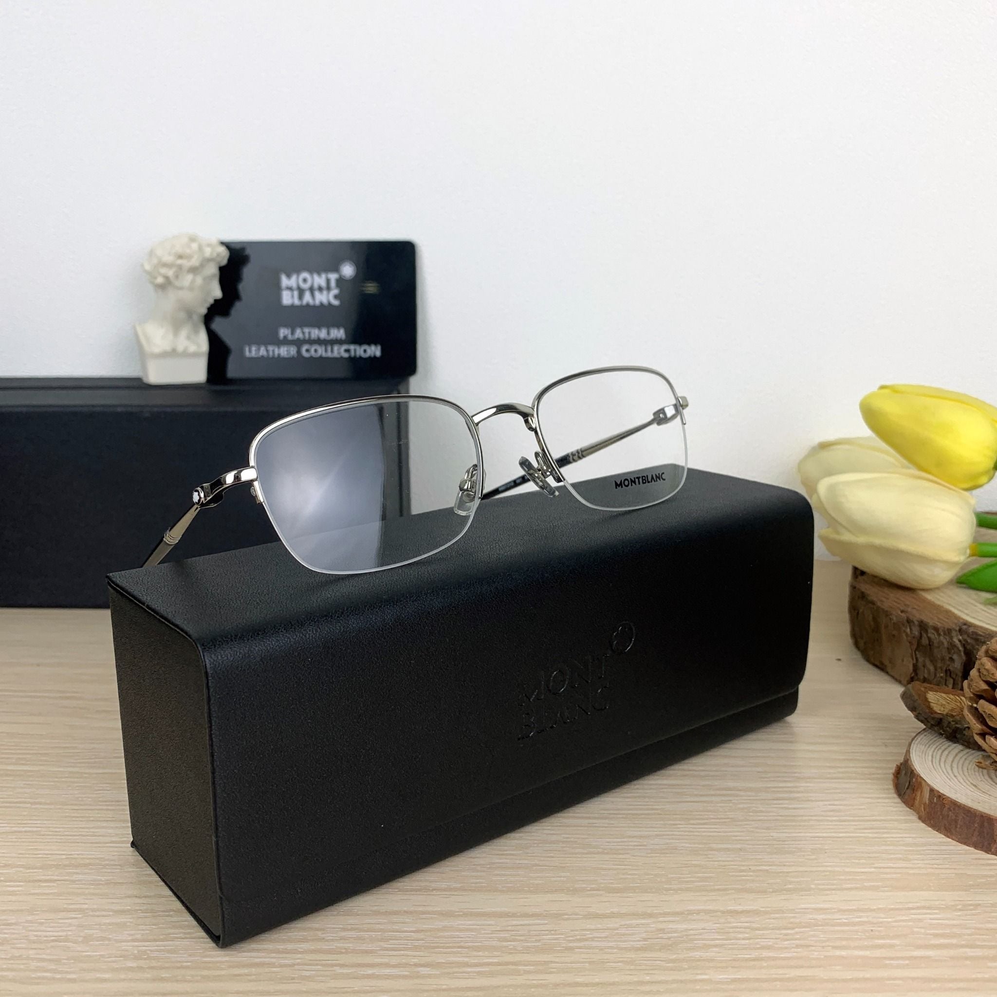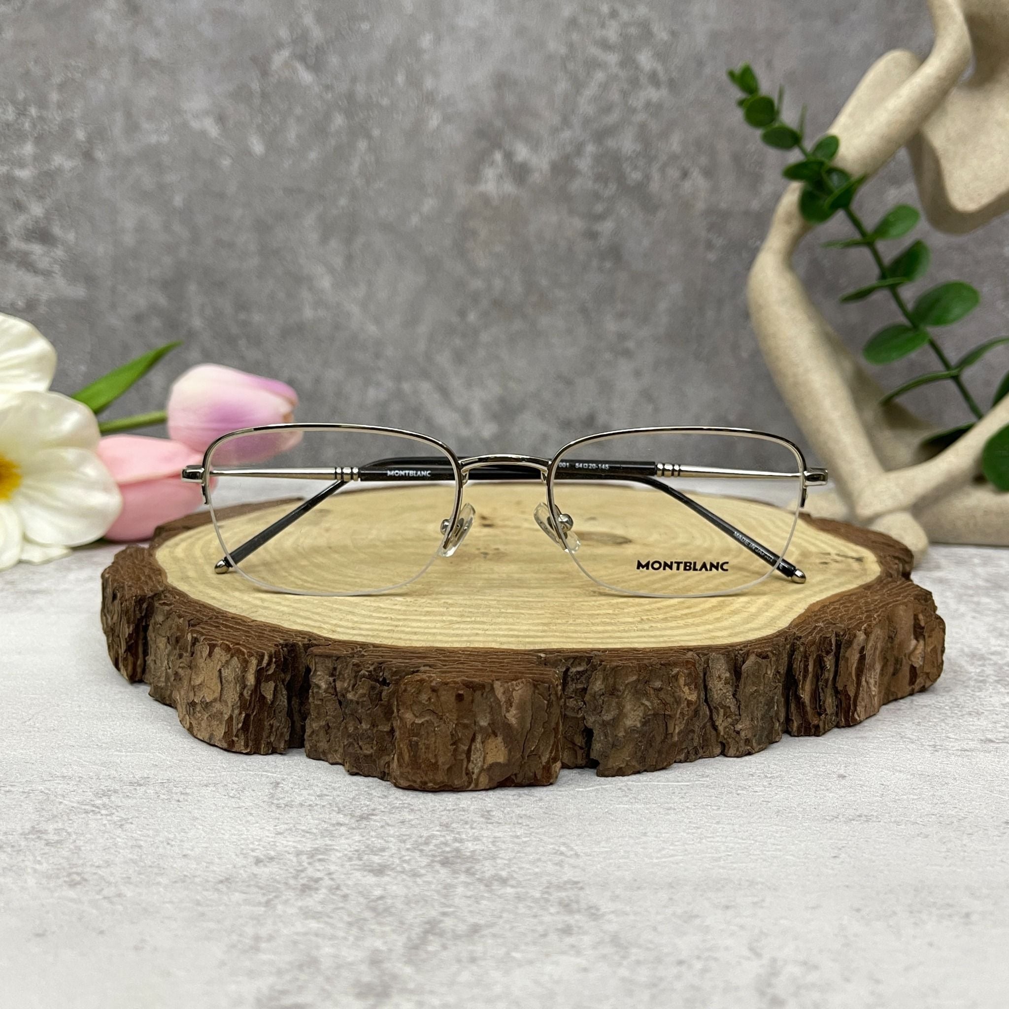 Mắt Kính MonBlanc Rectangular Metal Frame Silver Coloured Eyeglasses
