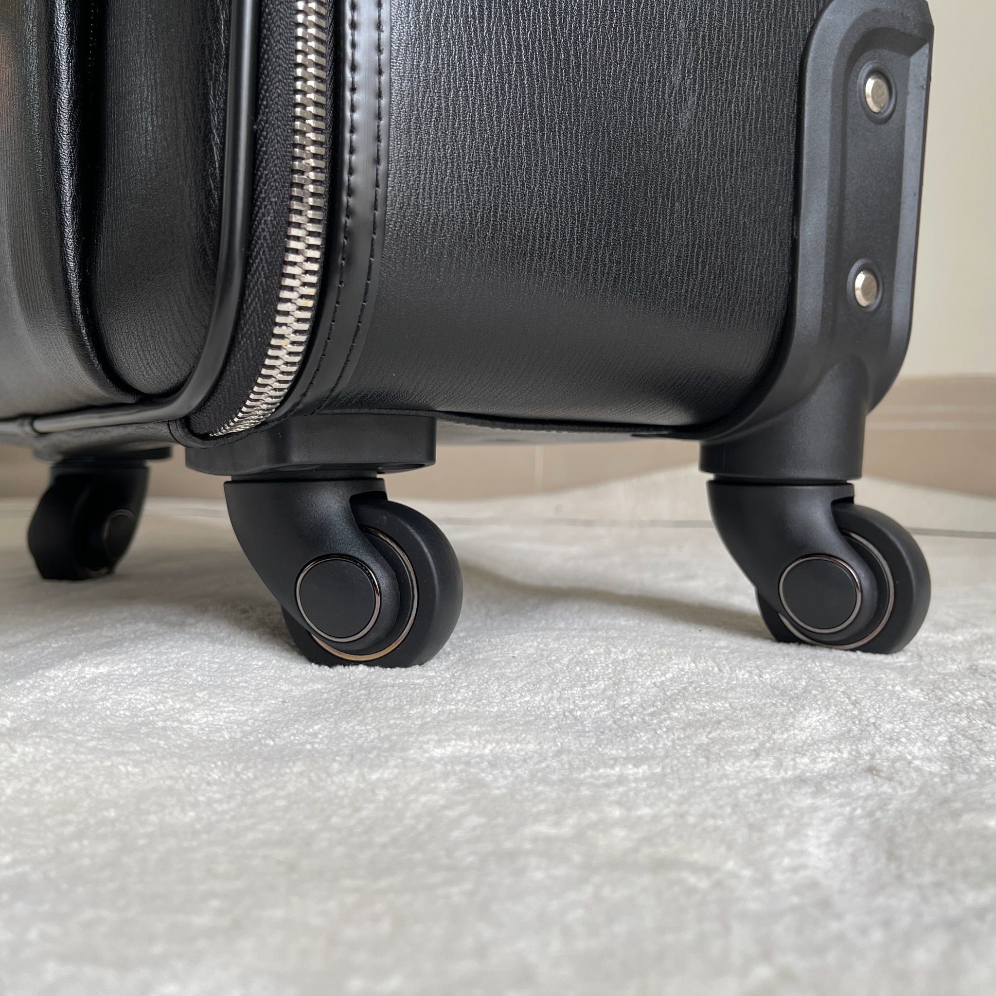 Chất da bò mềm dày dặn, thiết kế bánh xe được làm từ cao su, giảm độ ồn khi di chuyển