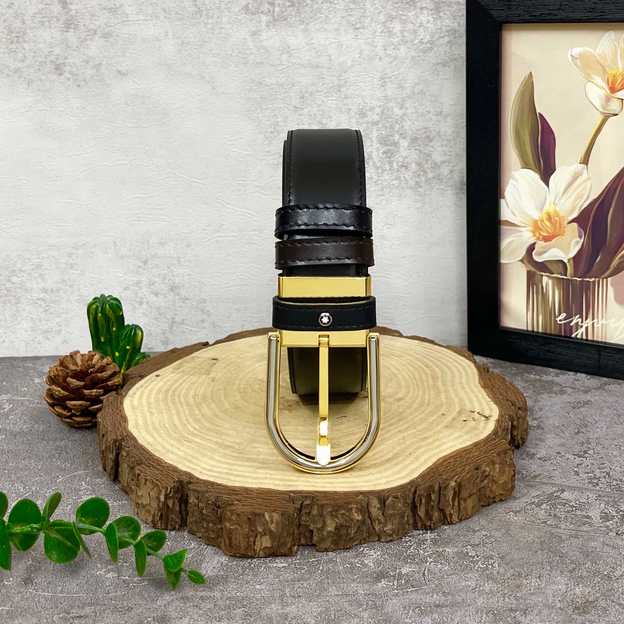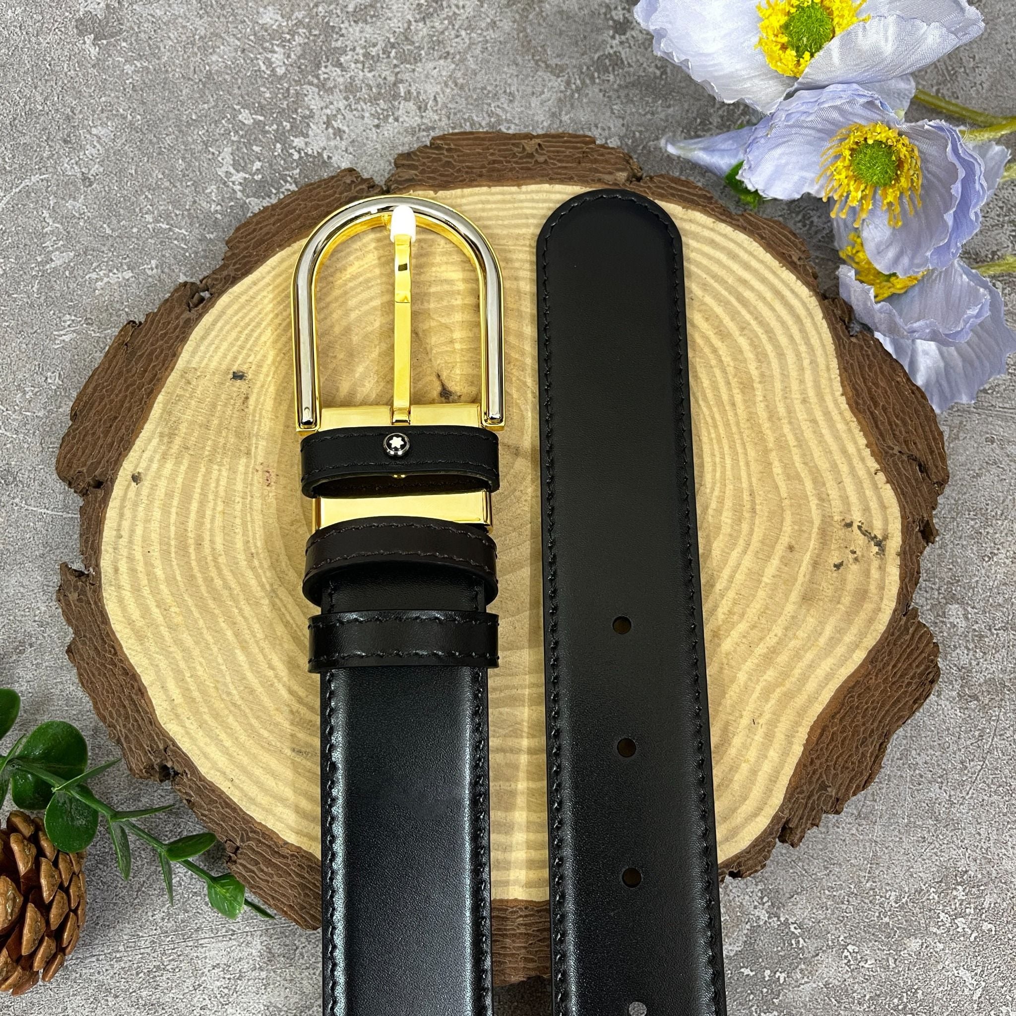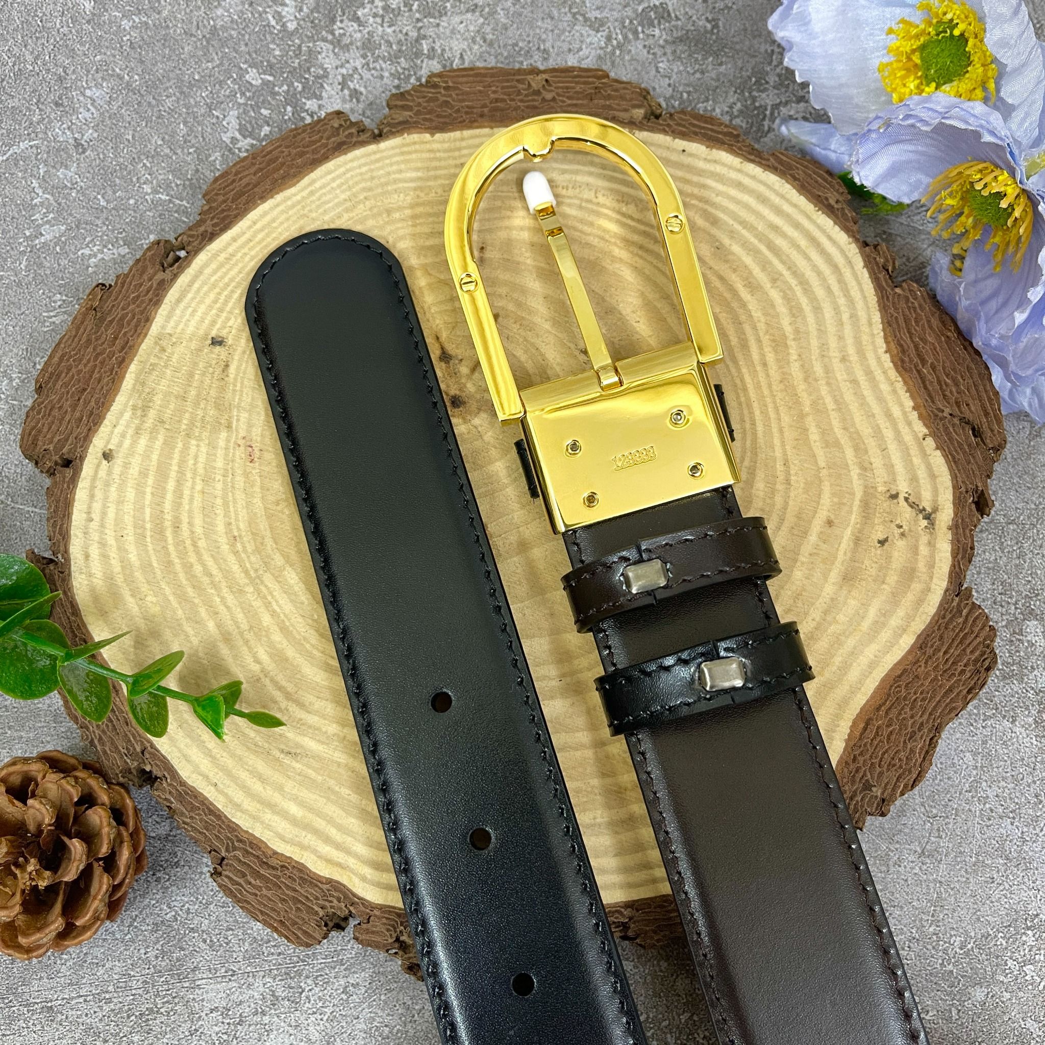 Thắt lưng Horseshoe buckle black 35 mm leather belt