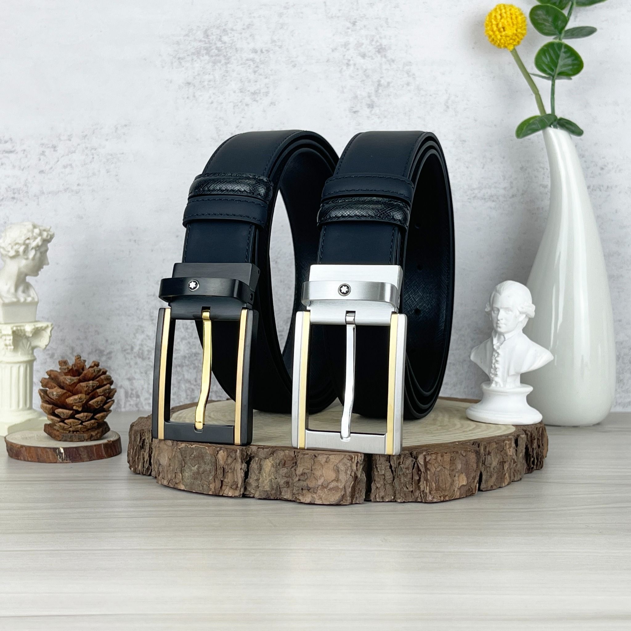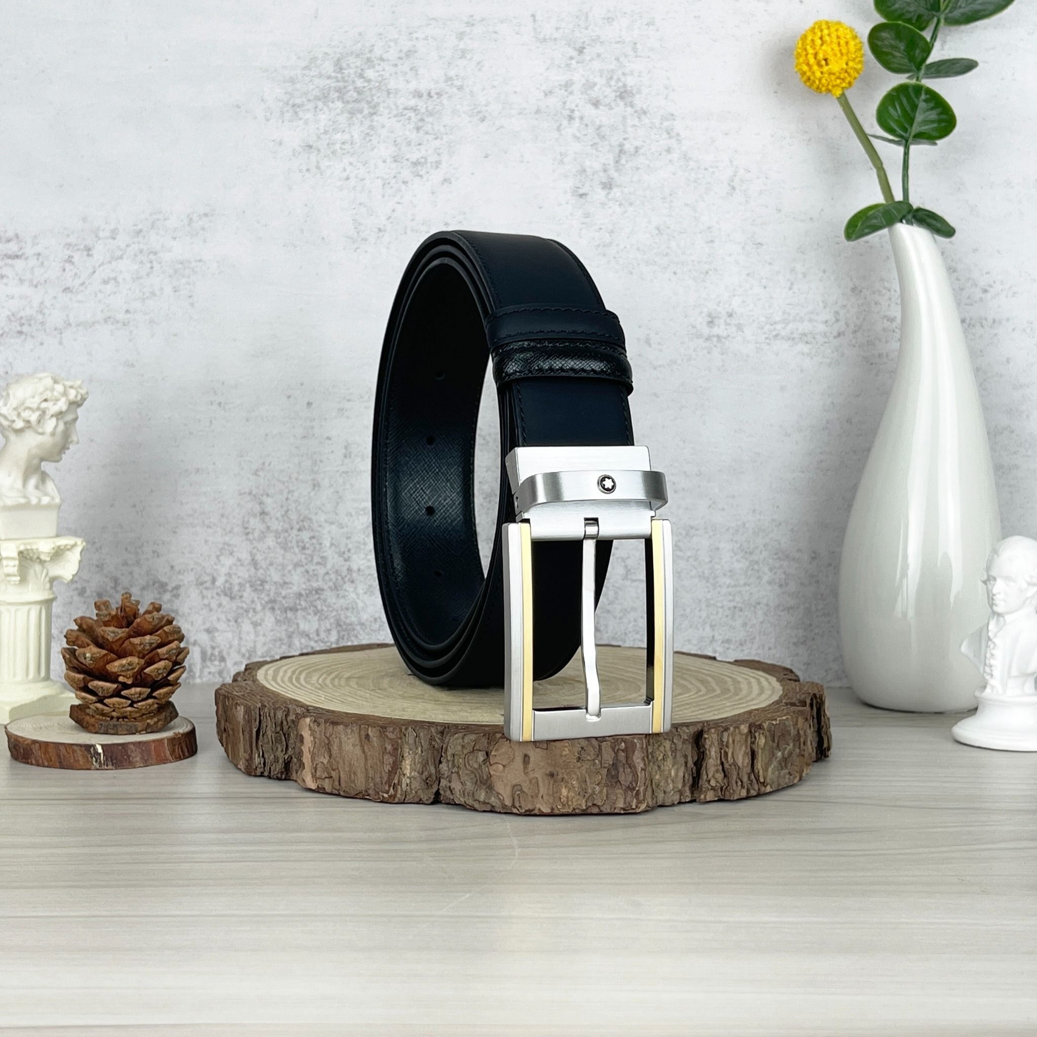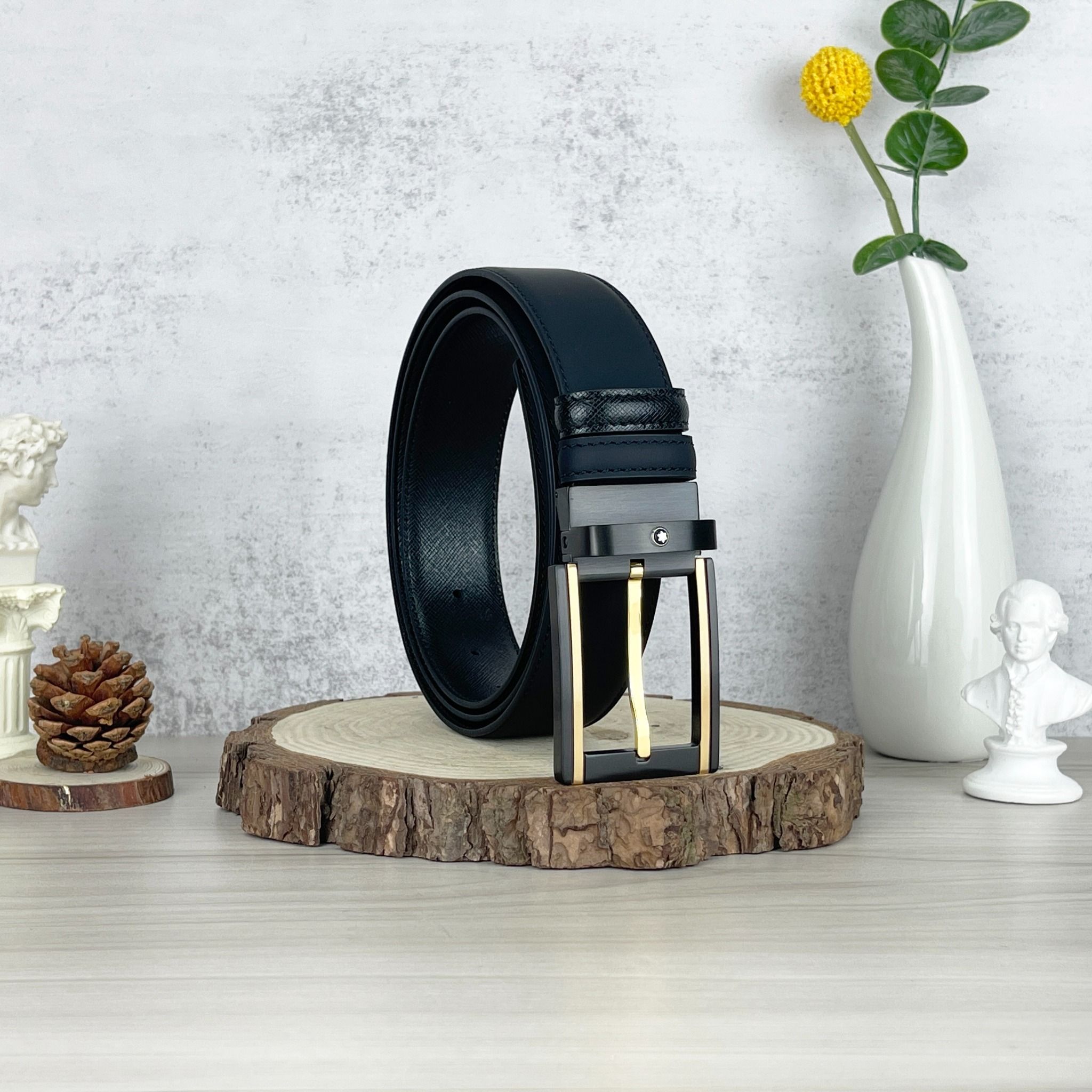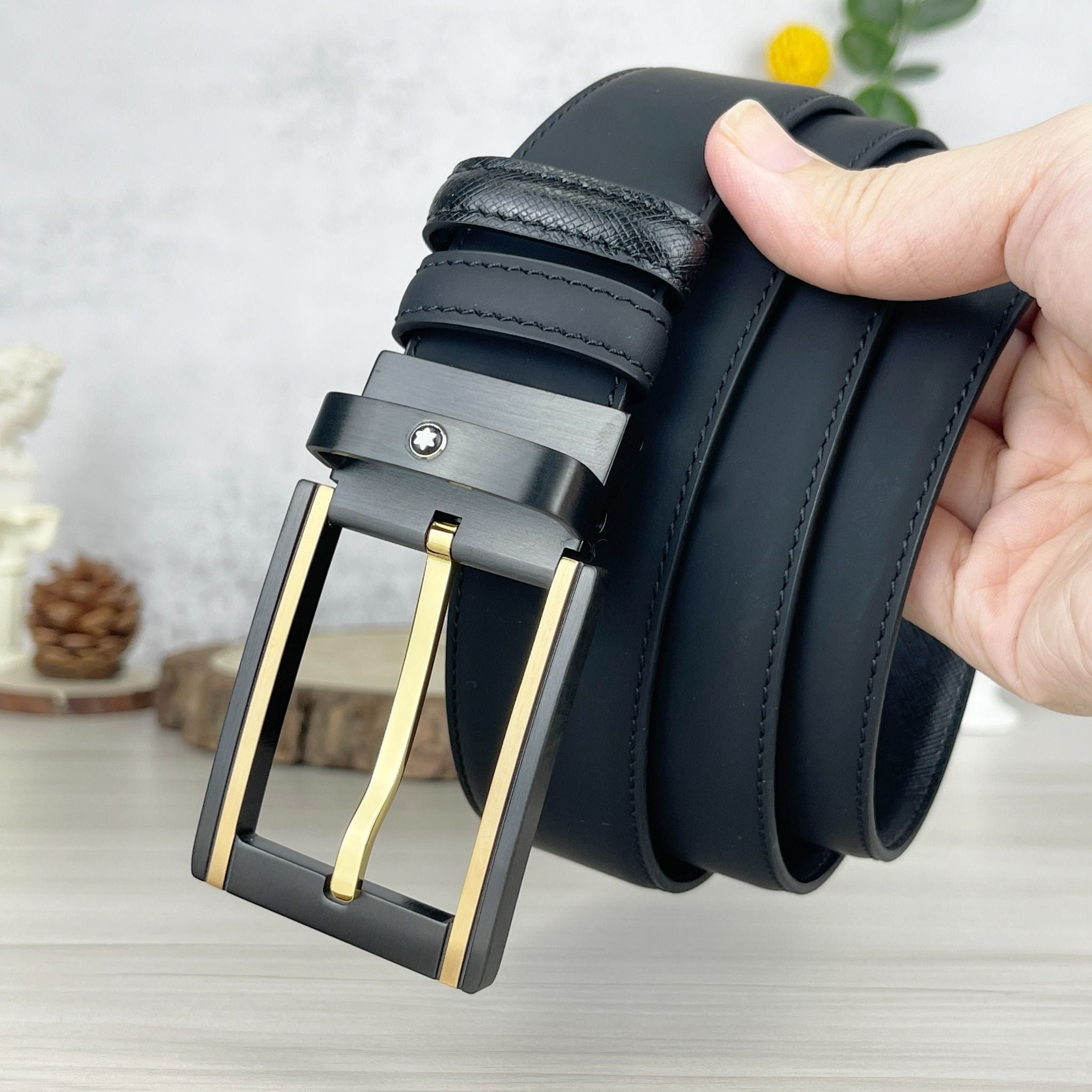 Thắt lưng Monblanc Black/ White 35 mm leather belt - Kiểu dáng mạnh mẽ, chuẩn gu quý ông.