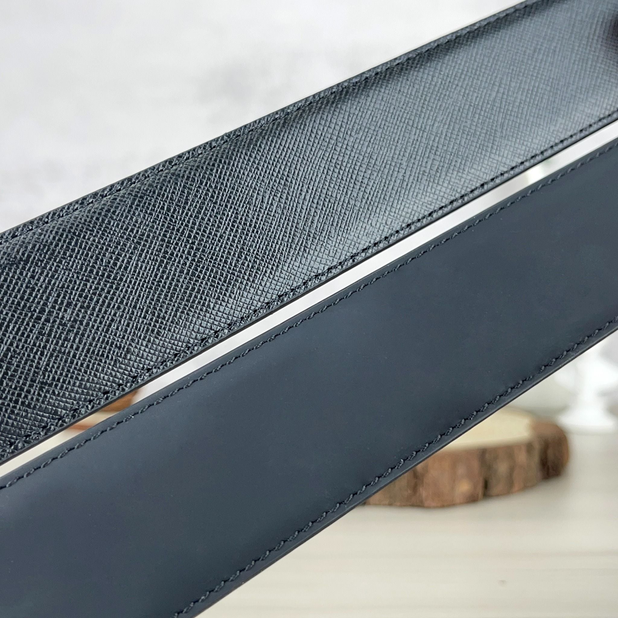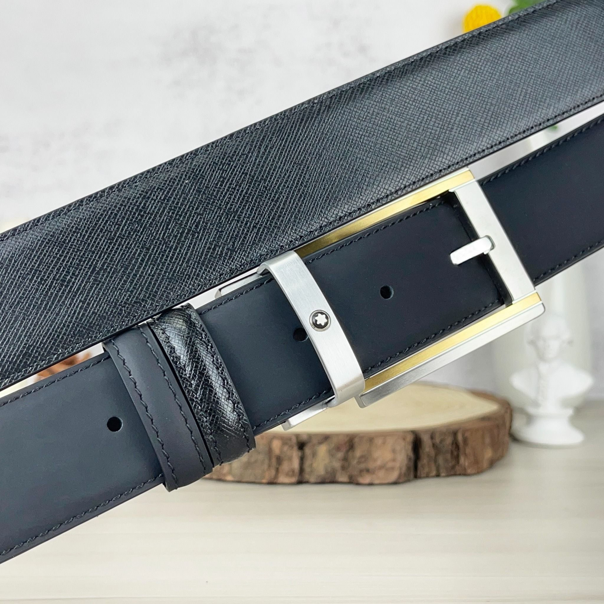 Thắt lưng Monblanc Black/ White 35 mm leather belt