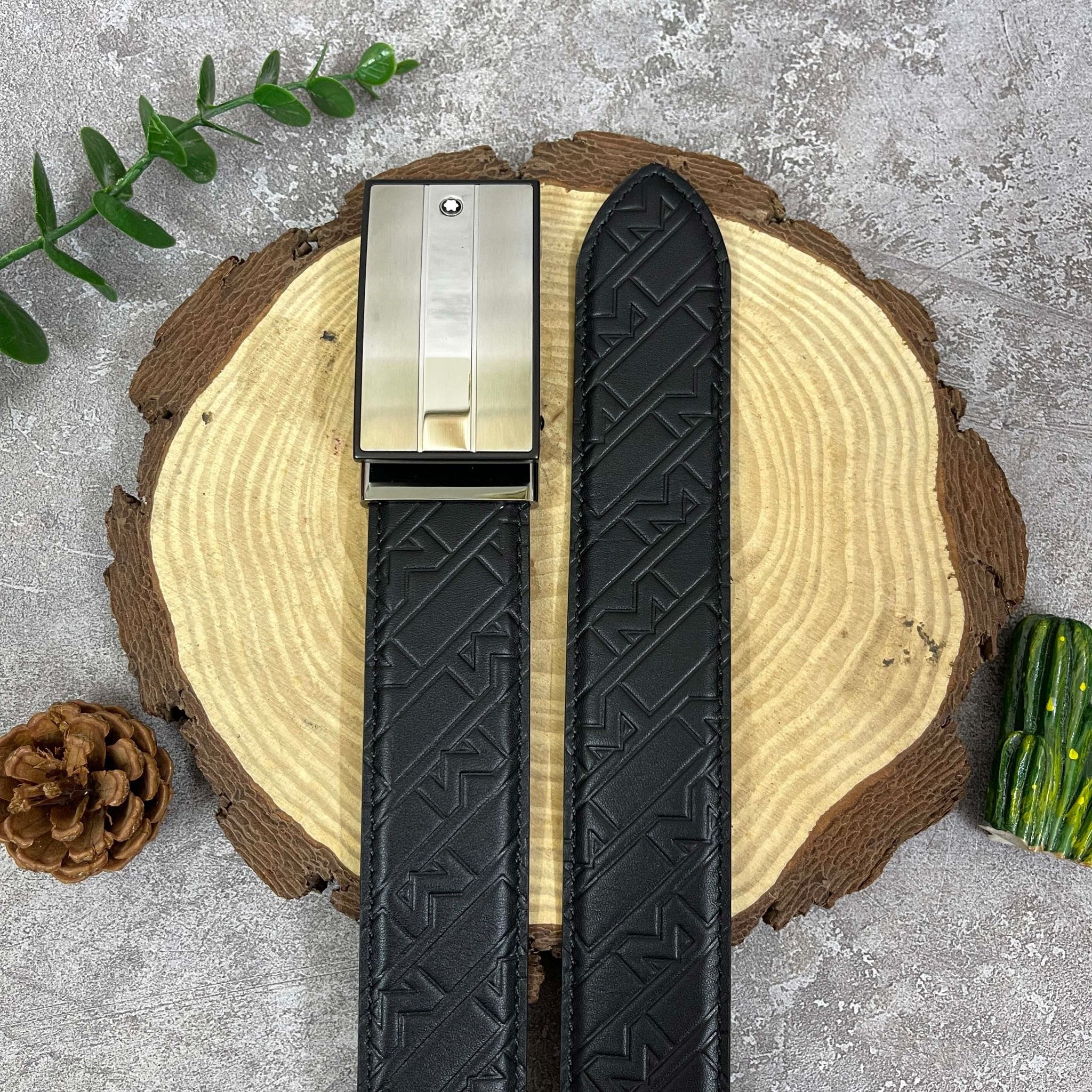 Thắt lưng MonBlanc Rectangular Mat embossed black/plain black 35 mm reversible leather belt