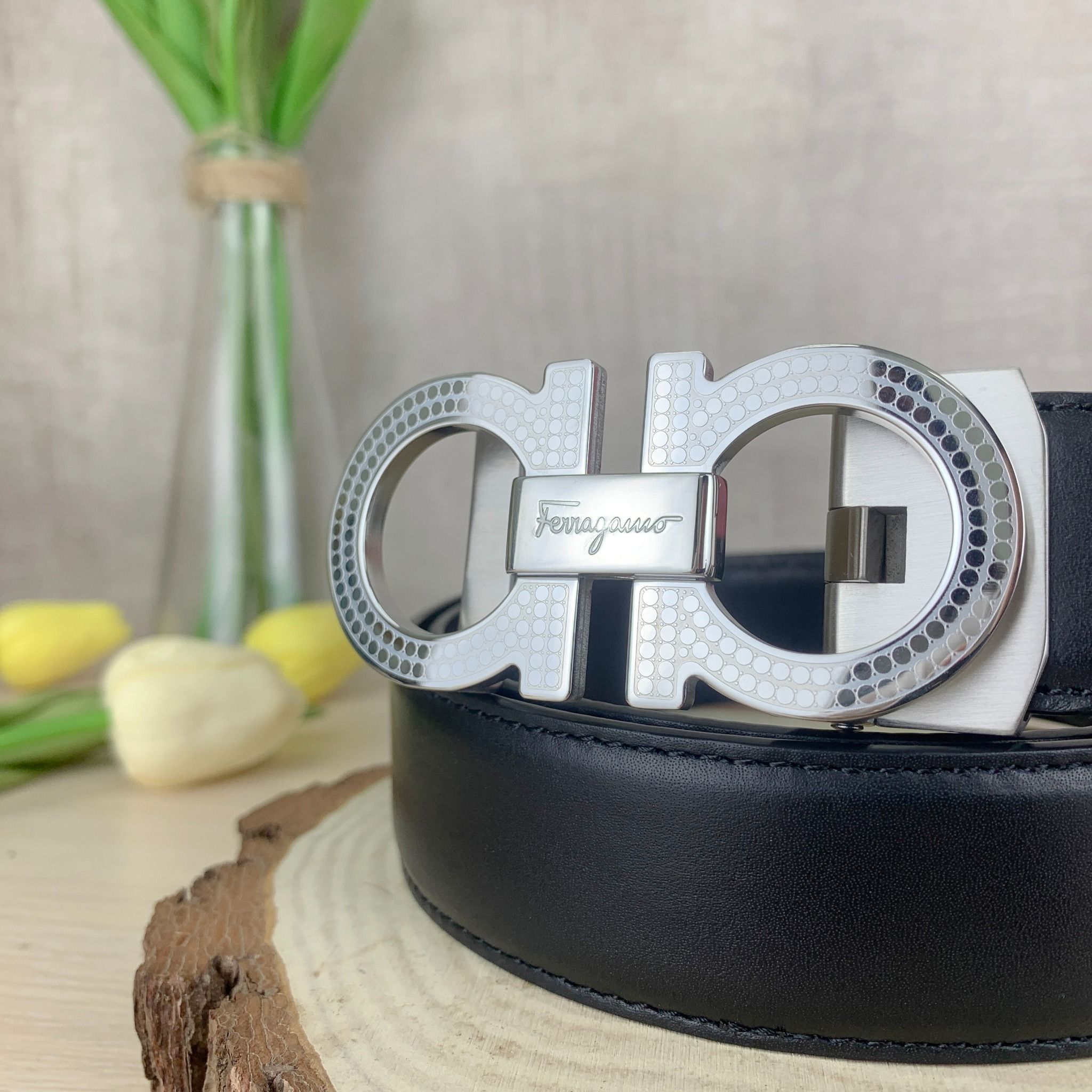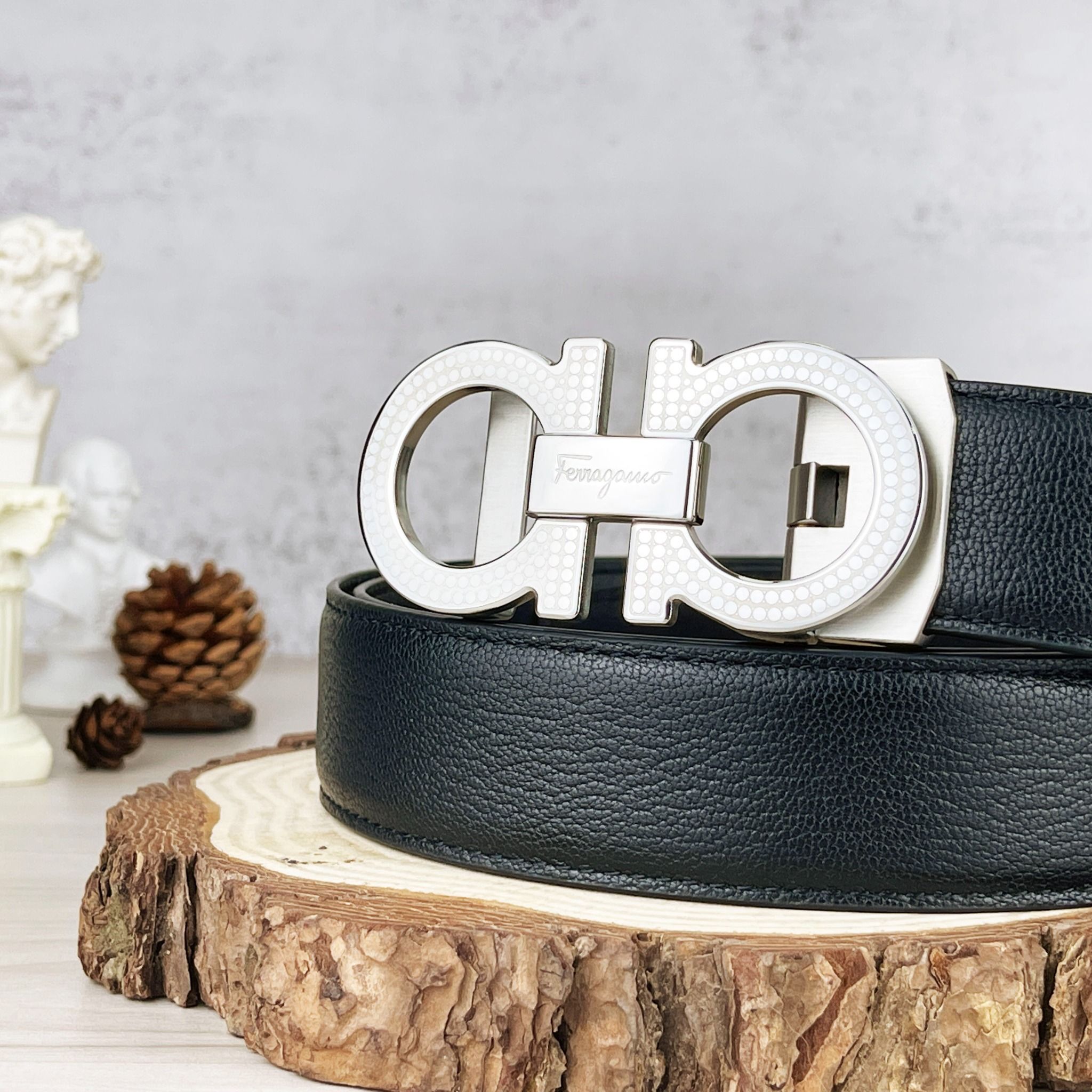 Thắt Lưng Reversible And Adjustable Gancini Belt - Khóa trượt tiện lợi dành cho những quý ông hiện đại .