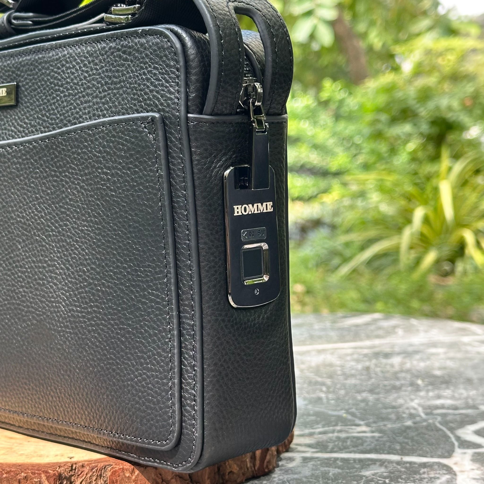 Túi Đeo Chéo Homme Modena – Italy Classic Pebbled Leather Shoulder Bag with Fingerprint Lock