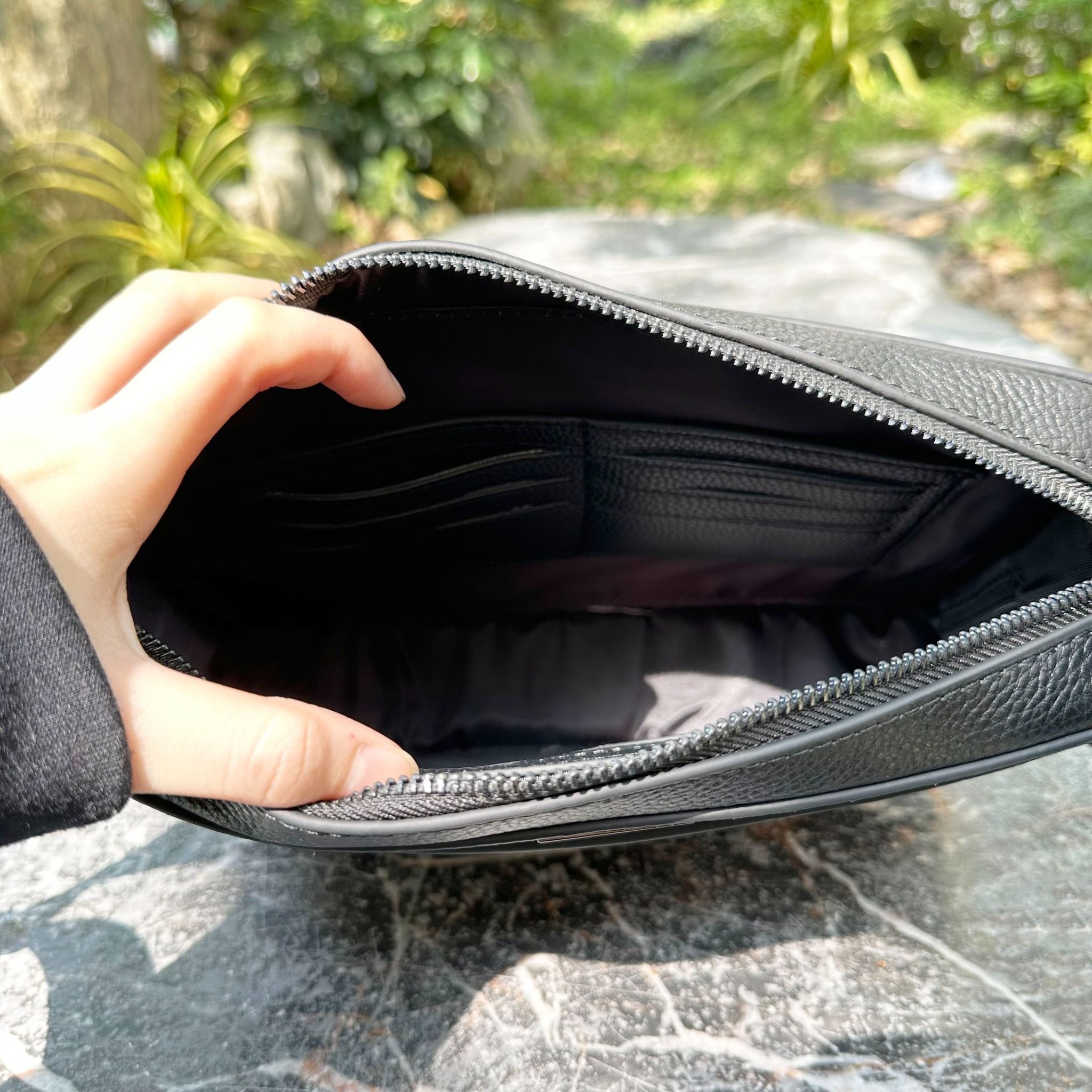 Chiếc túi được chế tác từ da bò hạt cao cấp, mang lại bề mặt mềm mại, sang trọng và khả năng chịu lực, chống trầy vượt trội. Chất da giữ form tốt và càng dùng càng đẹp, phù hợp với phong cách tinh giản nhưng đẳng cấp của người đàn ông hiện đại.