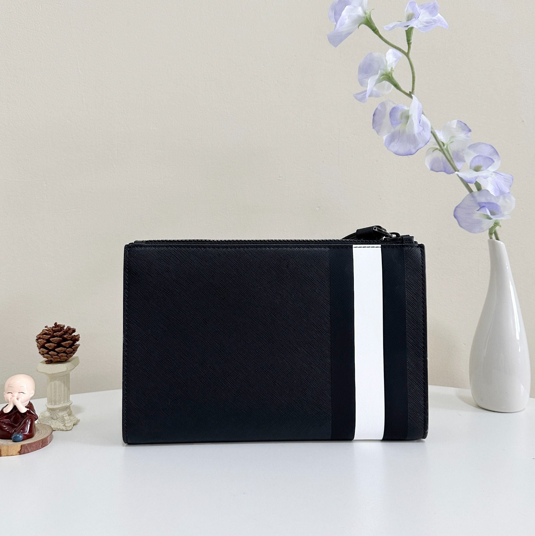 Dây cầm tay không thể tháo rời của túi mang lại sự chắc chắn và an toàn, đồng thời tạo điểm nhấn thẩm mỹ độc đáo. Bạn có thể tự tin mang theo Bally Skid Clutch Bag, biểu tượng của phong cách và đẳng cấp, để tạo nên một diện mạo hoàn hảo và ấn tượng trong mọi sự kiện.