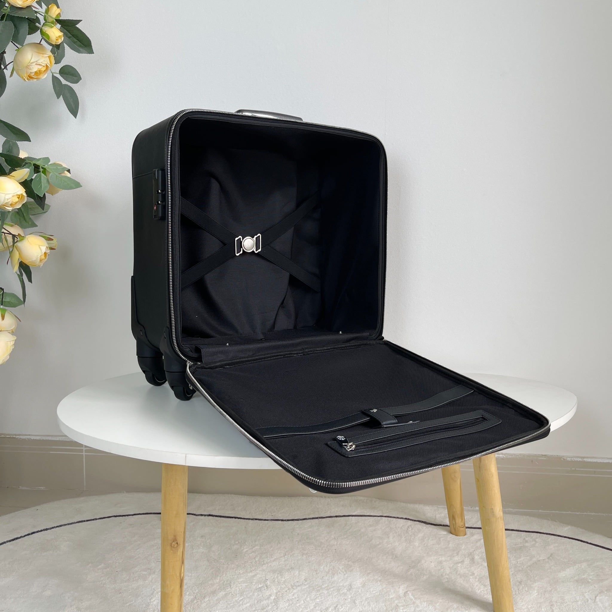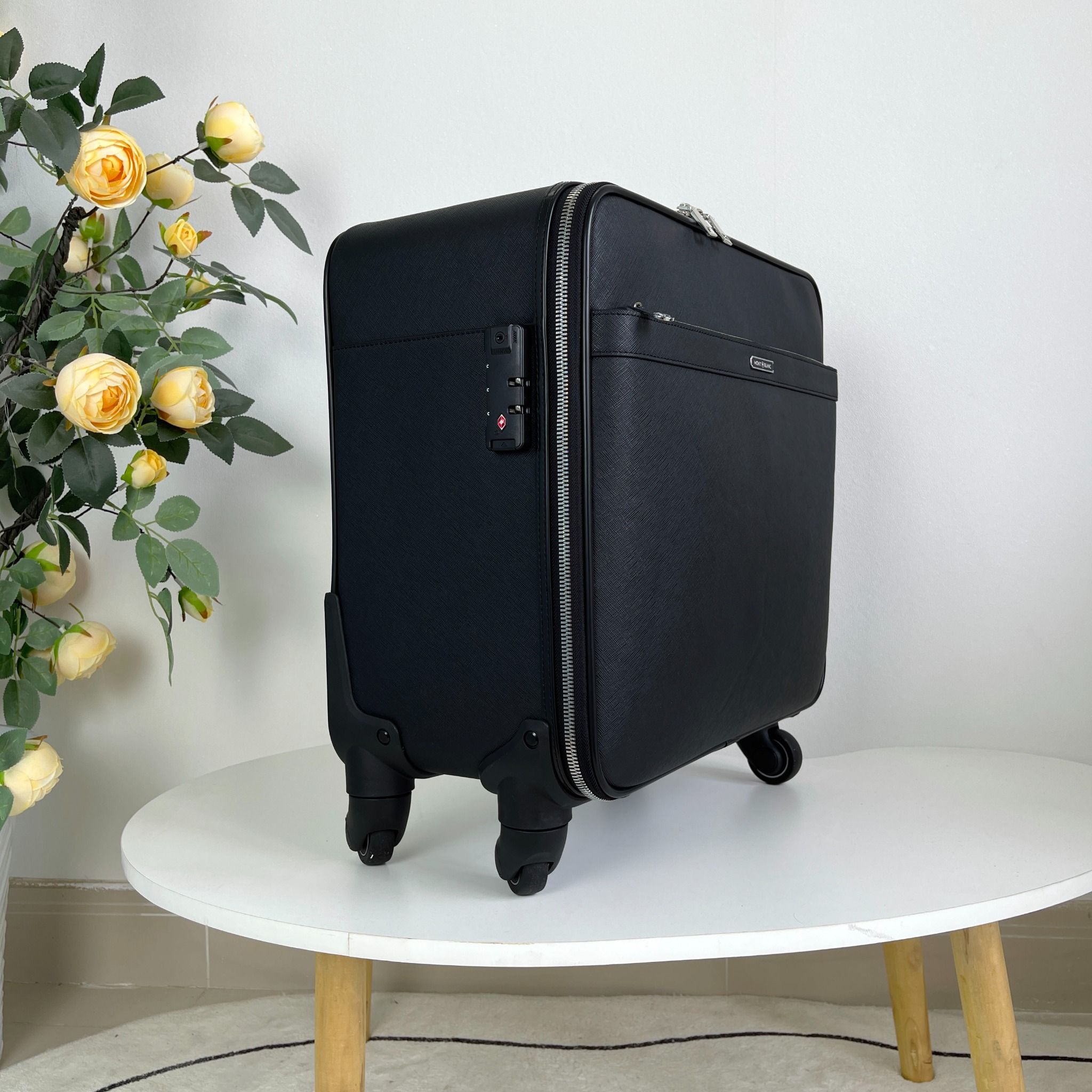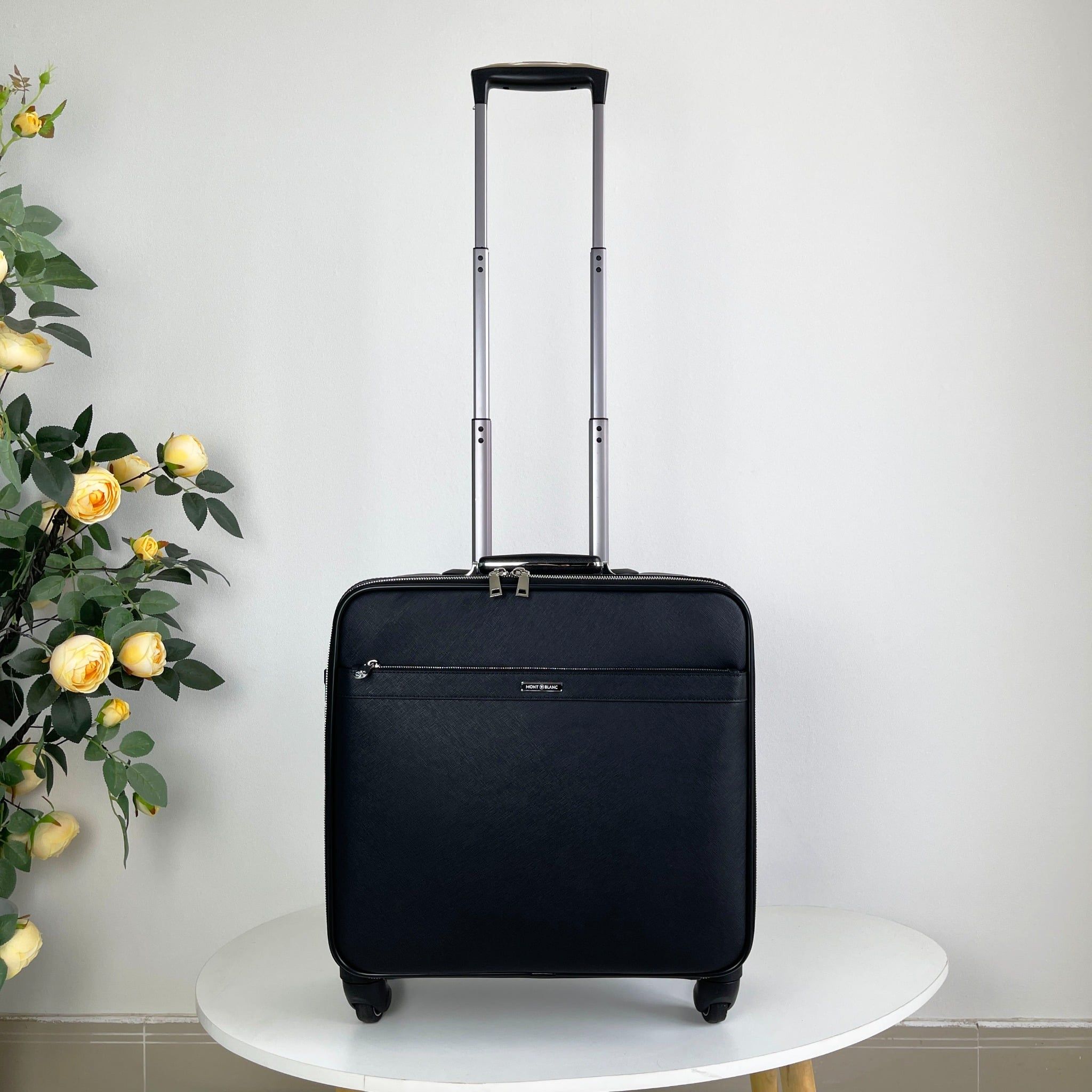 Chiếc vali Montblanc là sản phẩm chất lượng cao, đáng để sở hữu cho những doanh nhân thường xuyên đi công tác xa. Với thiết kế xe đẩy 4 bánh, việc di chuyển chiếc vali trở nên dễ dàng và tiện lợi hơn bao giờ hết.