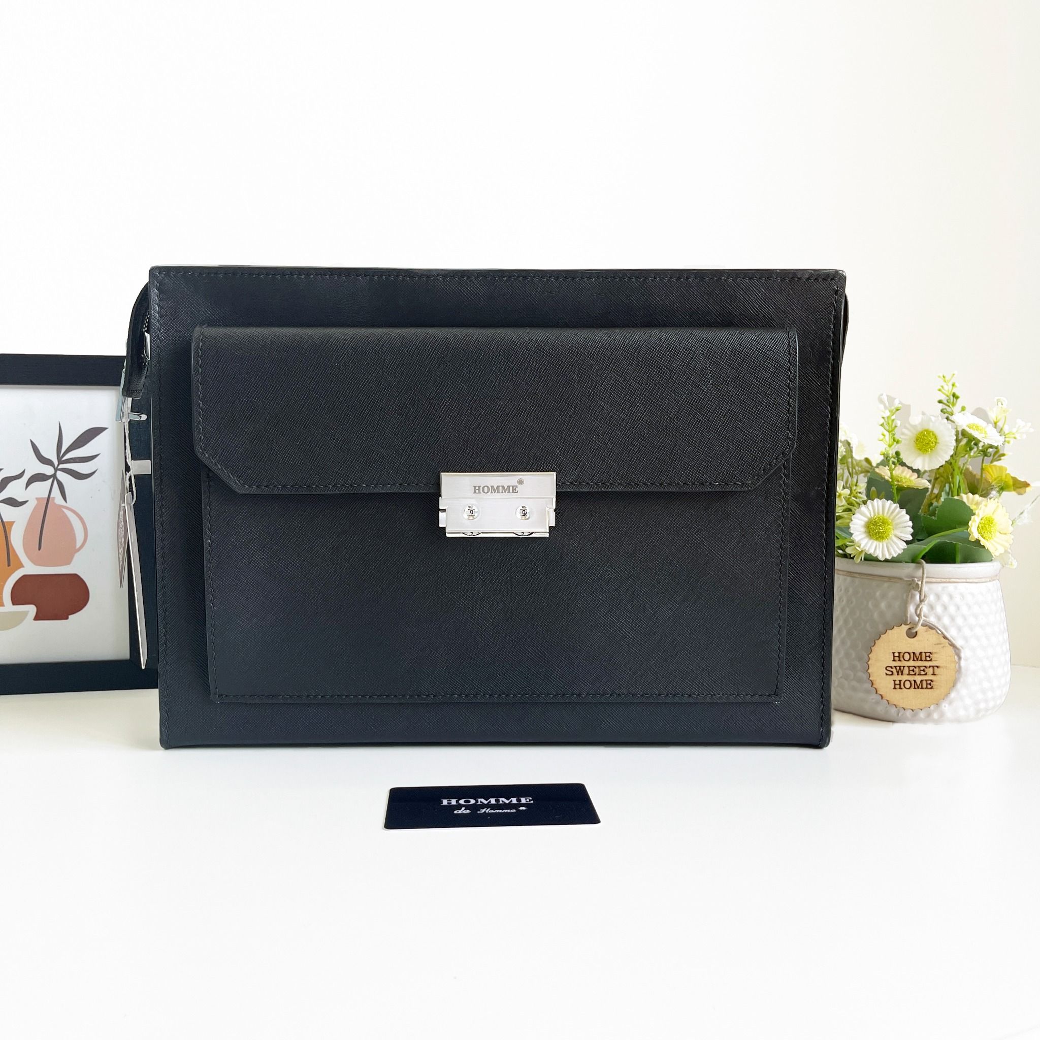Ví cầm tay Homme Venezia - Saffiano Leather With Finger Lock Handbag