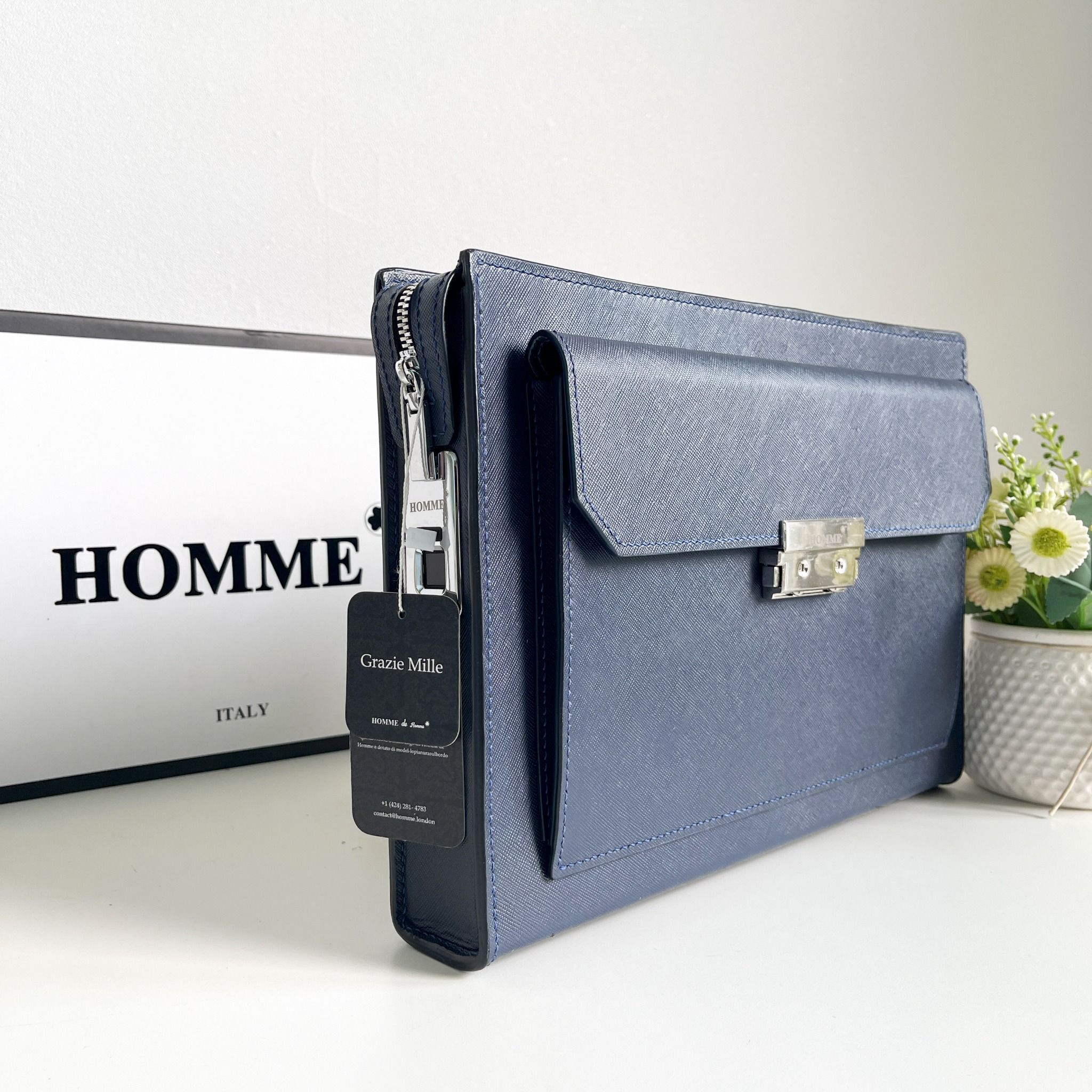 Ví cầm tay Homme Venezia cao cấp đến từ Ý là sự kết hợp hoàn hảo giữa nét cổ điển và tiện ích hiện đại. Được tạo ra bằng phương pháp thủ công tinh xảo, chiếc ví này mang đến cho bạn không chỉ sự thanh lịch mà còn tính năng bảo mật nâng cao.