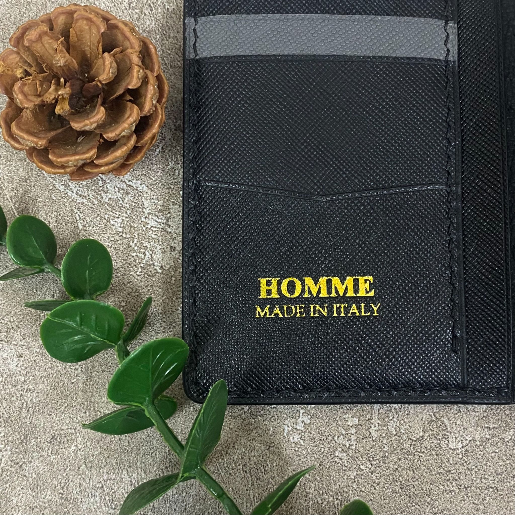 Với màu sắc đen-xám trung tính, Homme Rovigo phù hợp với mọi phong cách, từ thanh lịch, hiện đại đến cổ điển. Bên trong chiếc ví, bạn sẽ tìm thấy không chỉ một, mà là tám ngăn đựng thẻ thông minh và tiện lợi. Các ngăn này được trang trí bằng logo HOMME MADE IN ITALY đầy tinh tế, tạo nên điểm nhấn độc đáo.